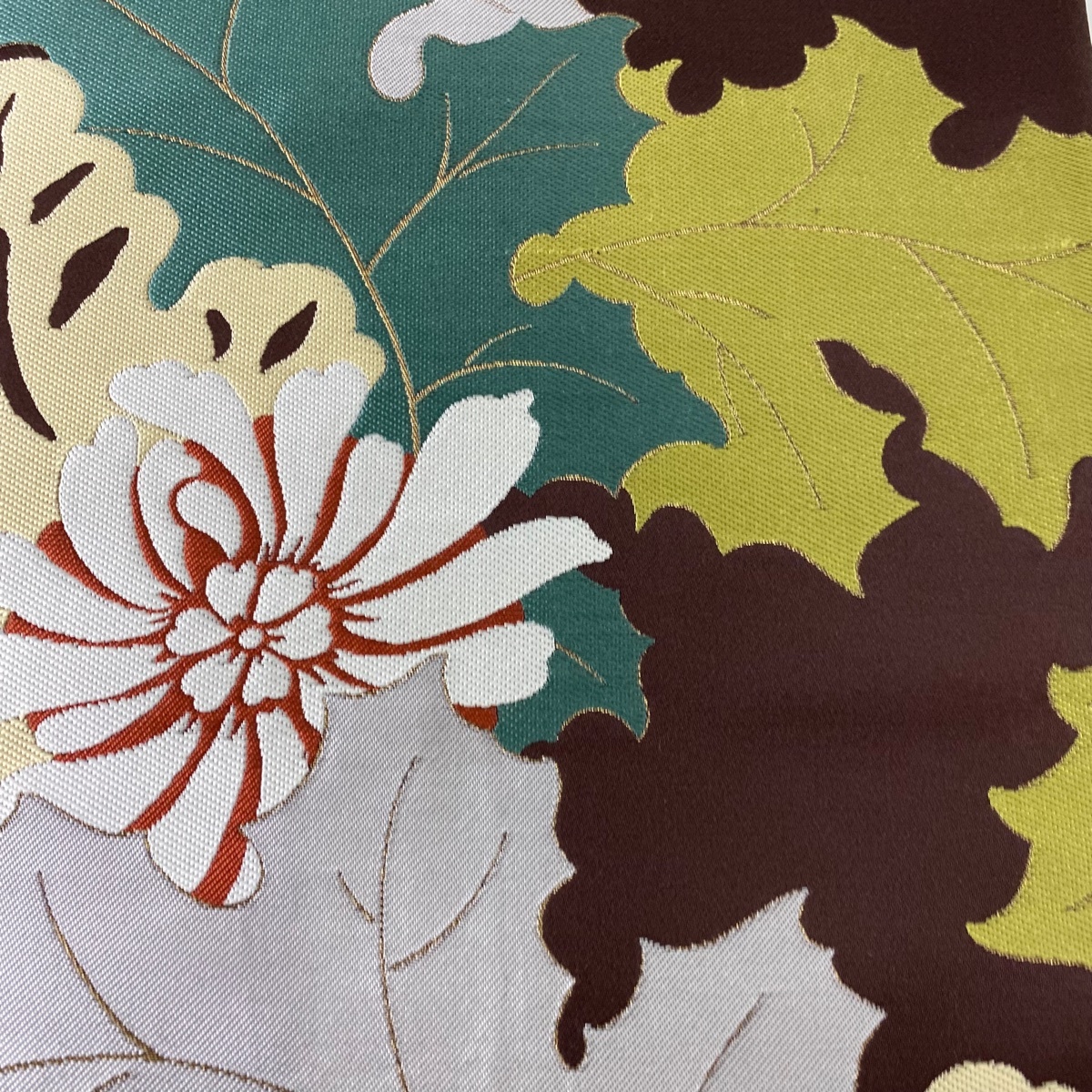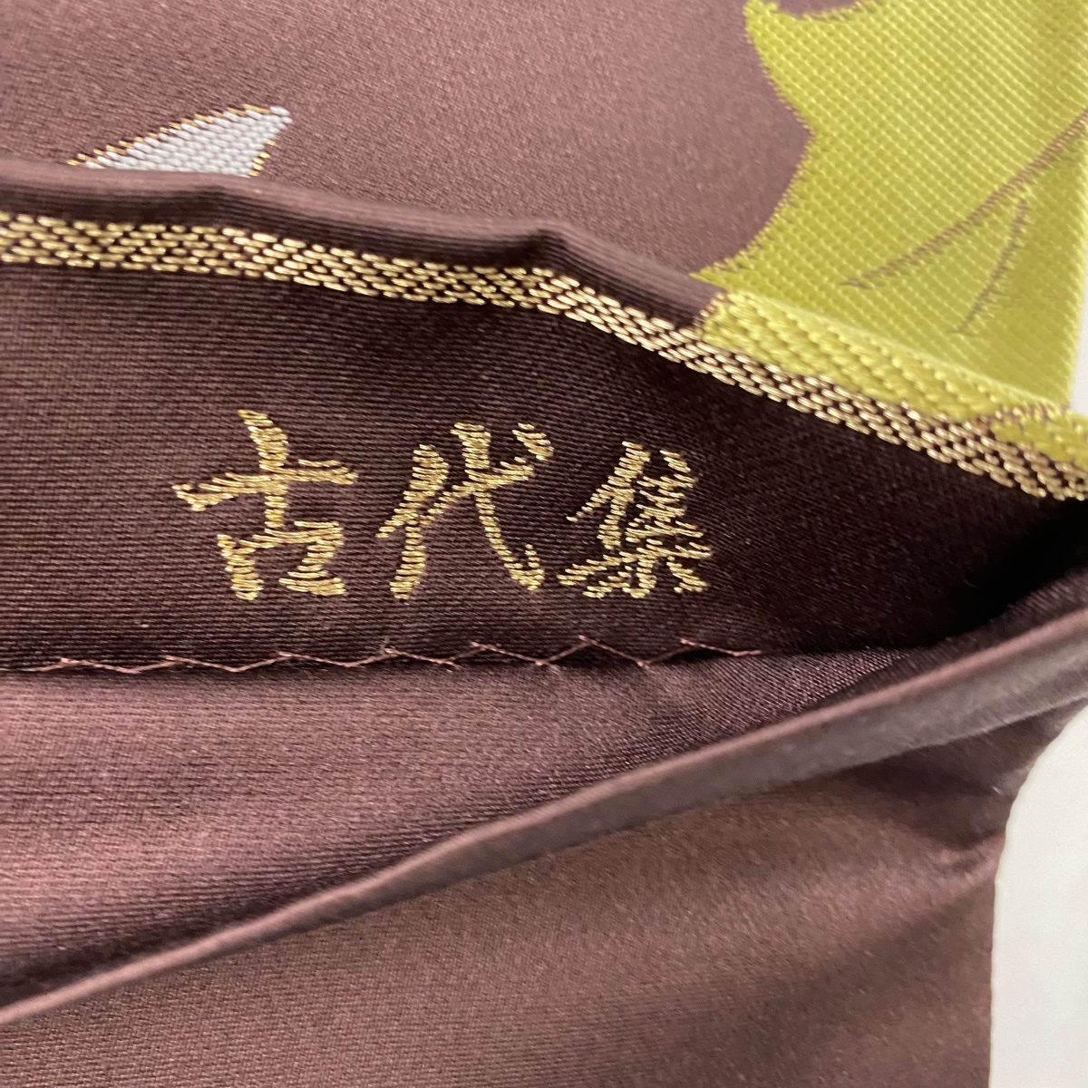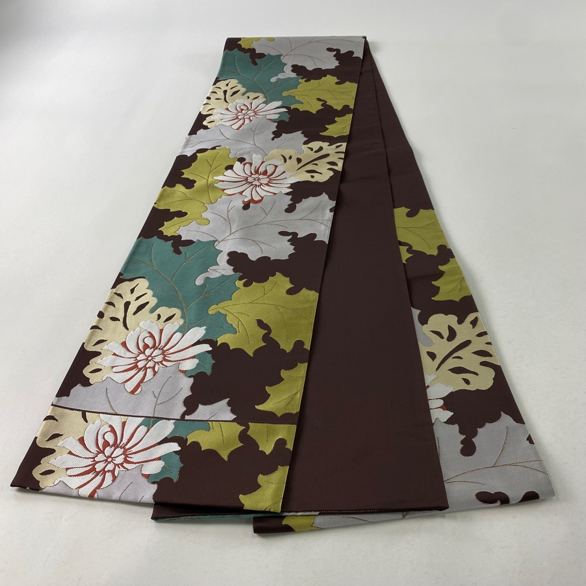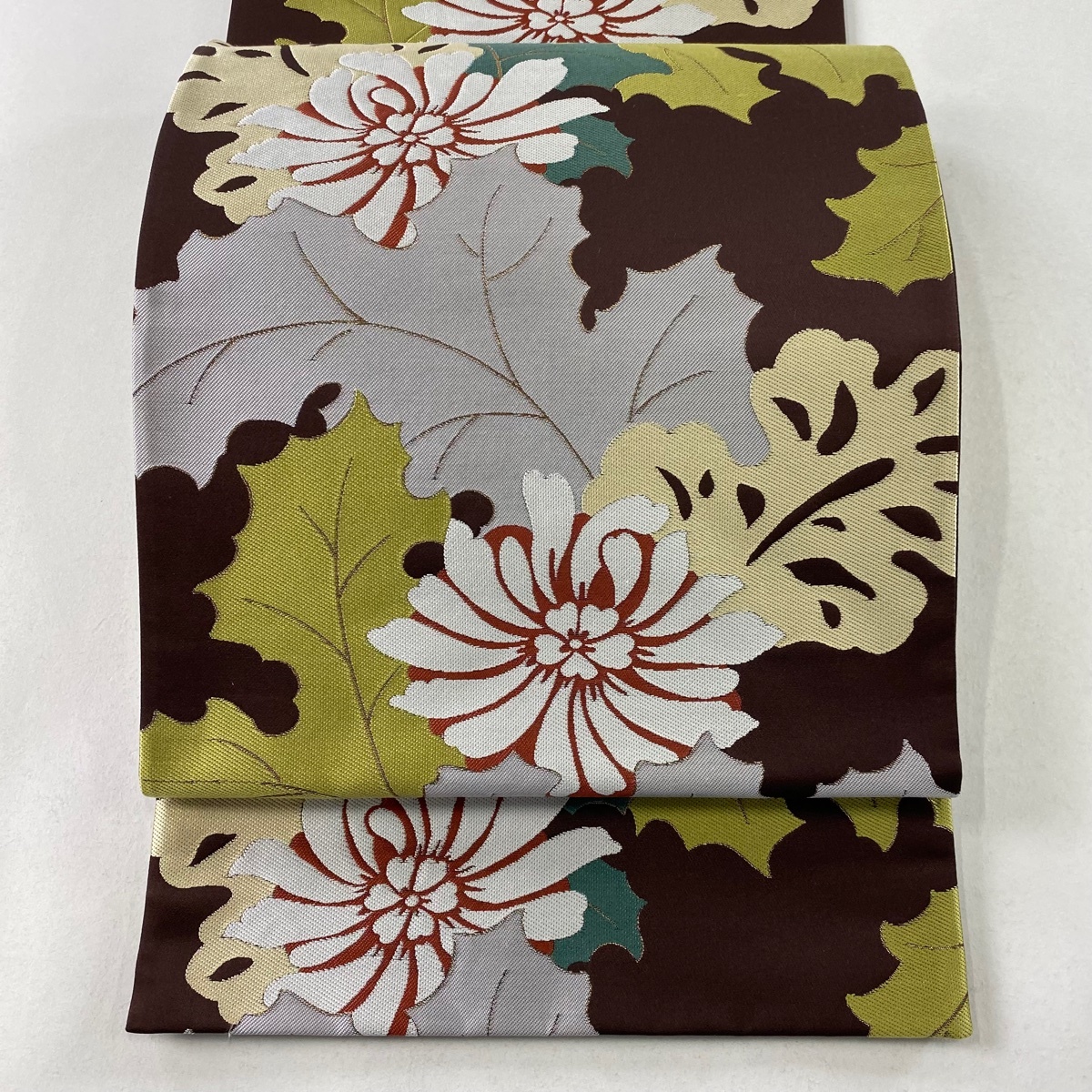 袋帯 美品 秀品 古代集 草花 箔 焦茶色 六通 正絹 【中古】 |