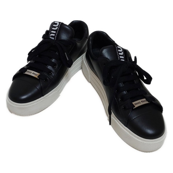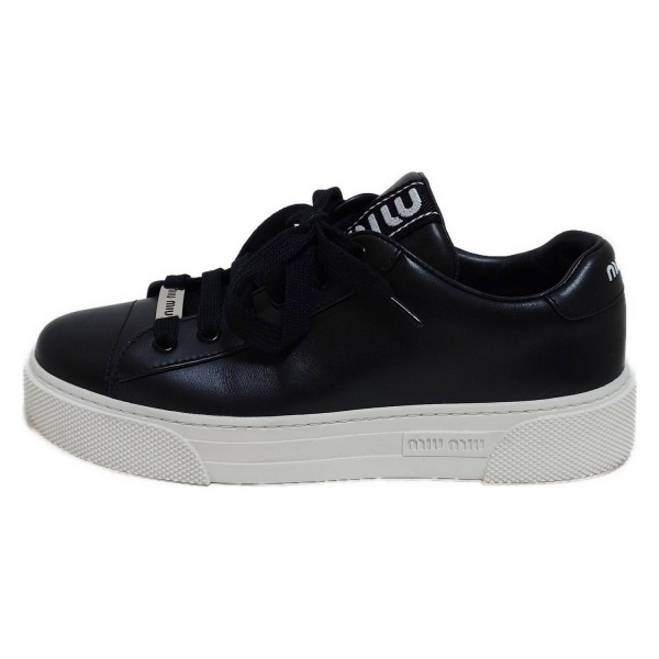 ミュウミュウ miumiu スニーカー 36.5 5E165D - レザー 黒 レディース インソール取外し可 靴