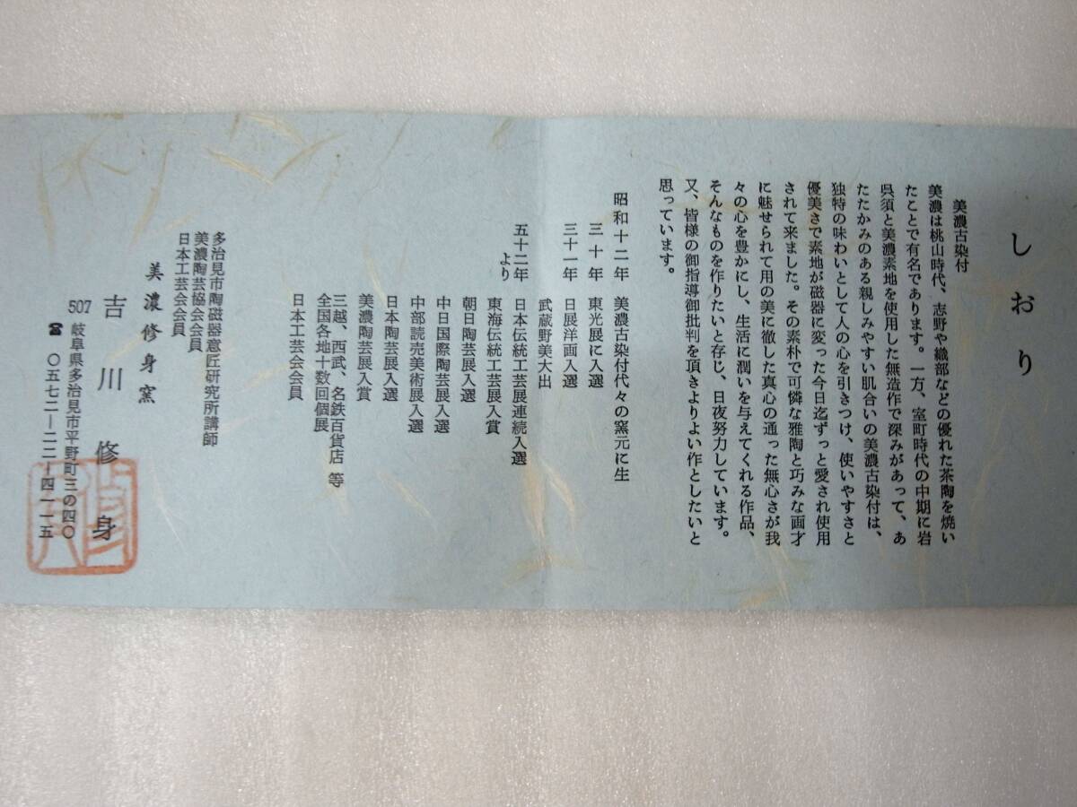 美濃染付の名工、吉川修身作、古染、稲穂絵、八寸壺、栞、共箱、未使用品でございます。ゆうパック100サイズの発送となります。 家庭保管の中古品で品で御座います。 ご理解の程ご入札下さい。 ★理由無きキャンセル 歴の有る方、新規の方の入札は一切お断りいたします。入札されても取り消し操作にて削除致しますので 入札順位が2番3番でも繰上げにて最高額入札者なる時が御座います。 コレクションにいかがですか? 発送はゆうパックのみとなります。 落札価格、単価に関わらず、定形外郵便、エクスパック、メール便等など一切お受けいたしません。 |