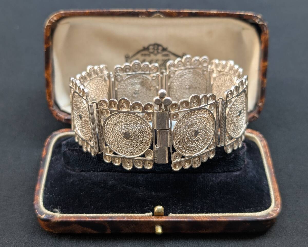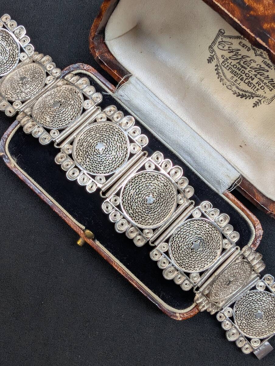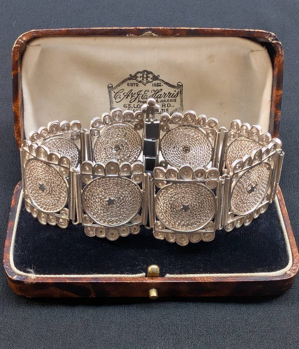 イギリスヴィンテージ フィリグリーシルバーブレスレット /30’s40’s50’sアールデコ英国アンティーク銀線細工ΓOT