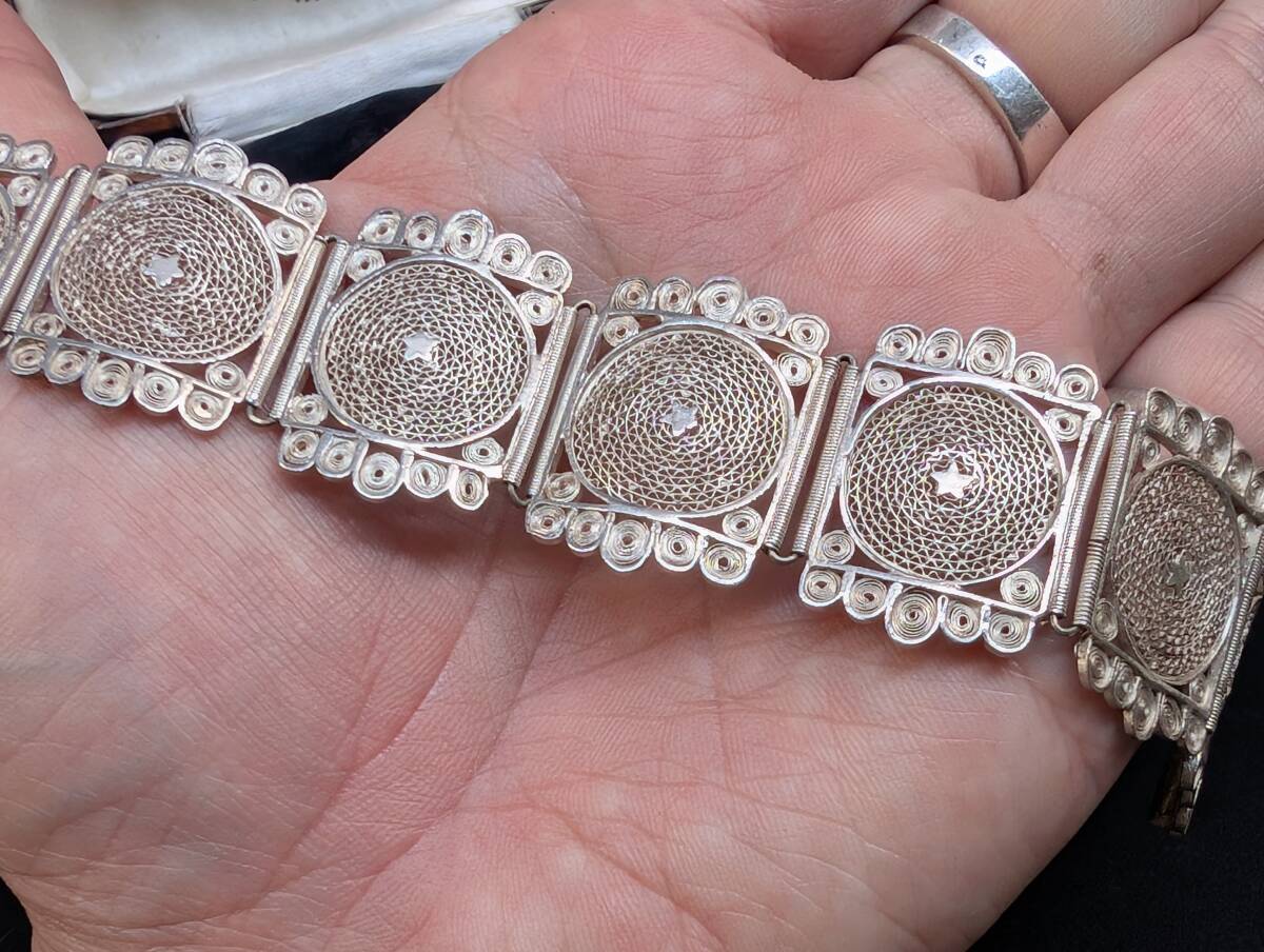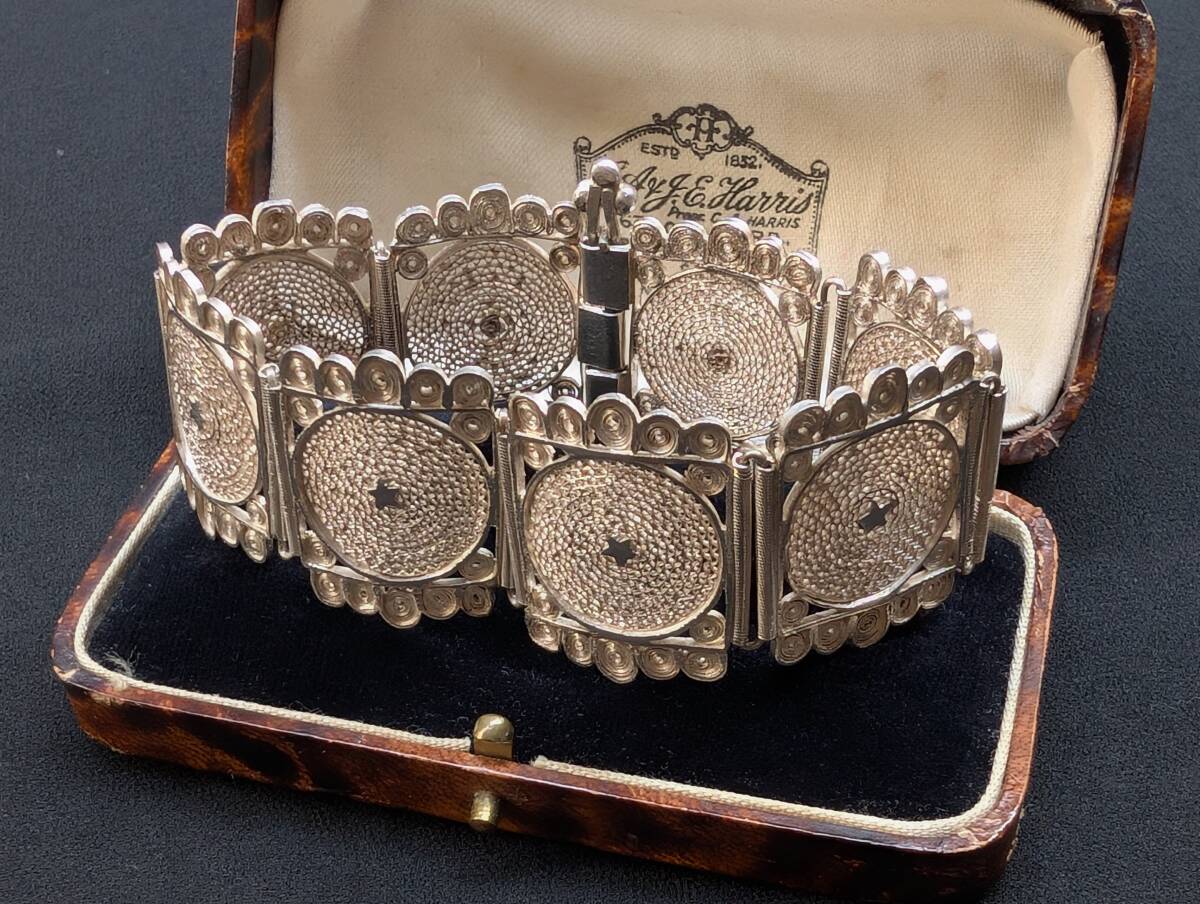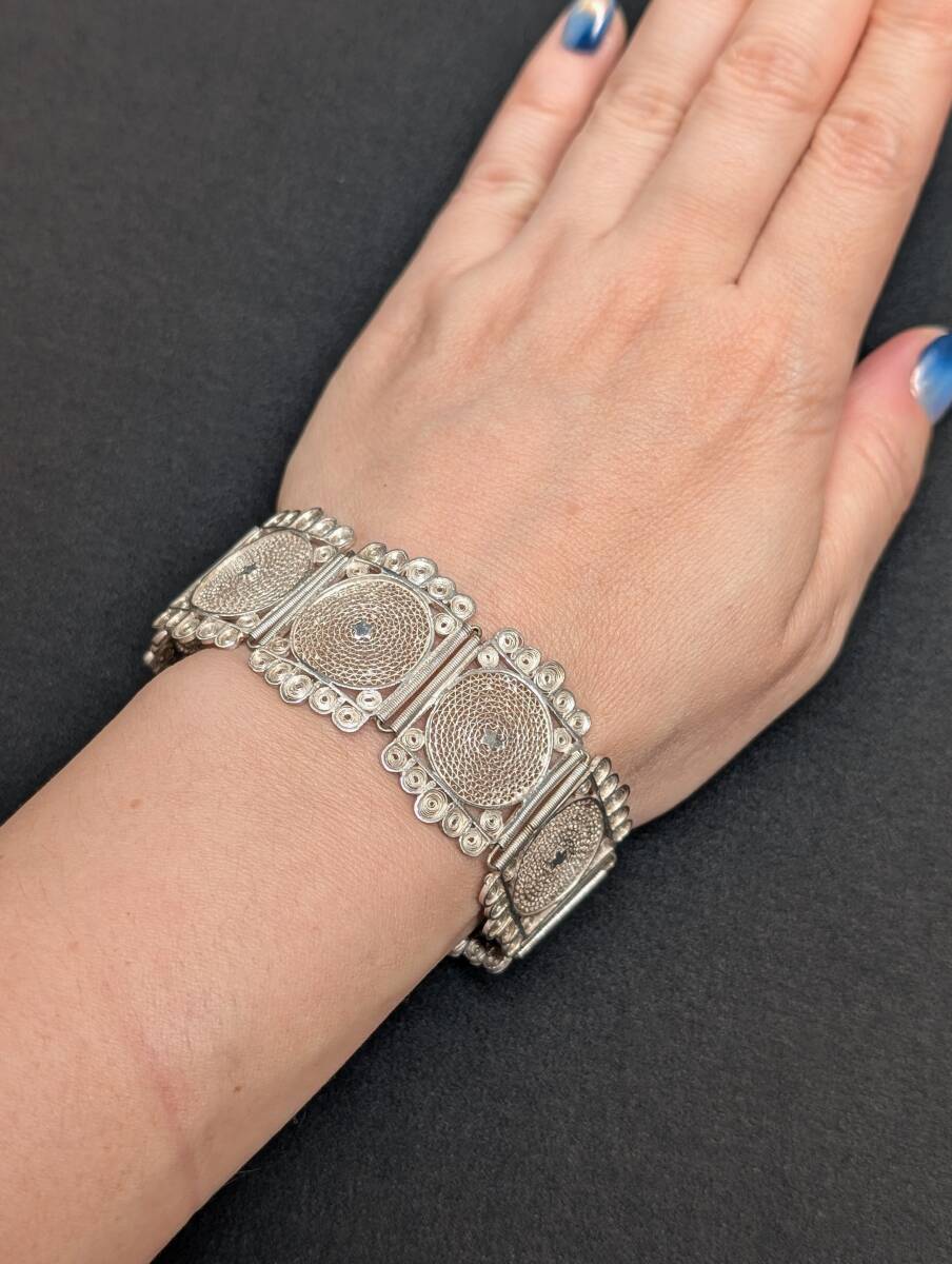 イギリスヴィンテージ フィリグリーシルバーブレスレット /30’s40’s50’sアールデコ英国アンティーク銀線細工ΓOT