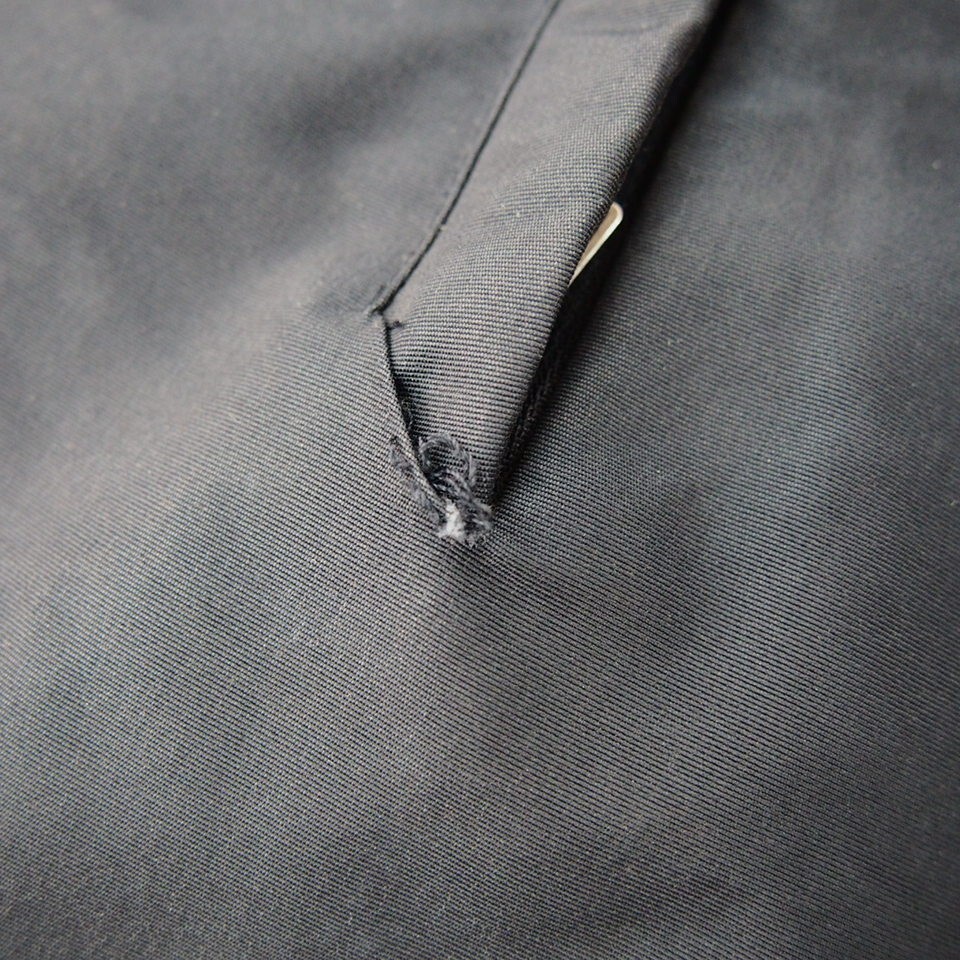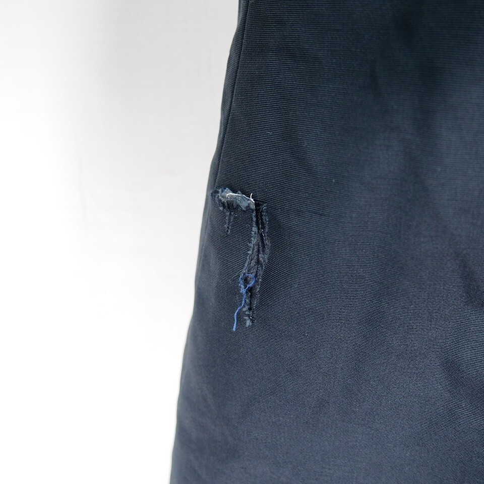左袖に小さな裂け傷があり、左ポケット口の縫い目に若干のホツレがございます。