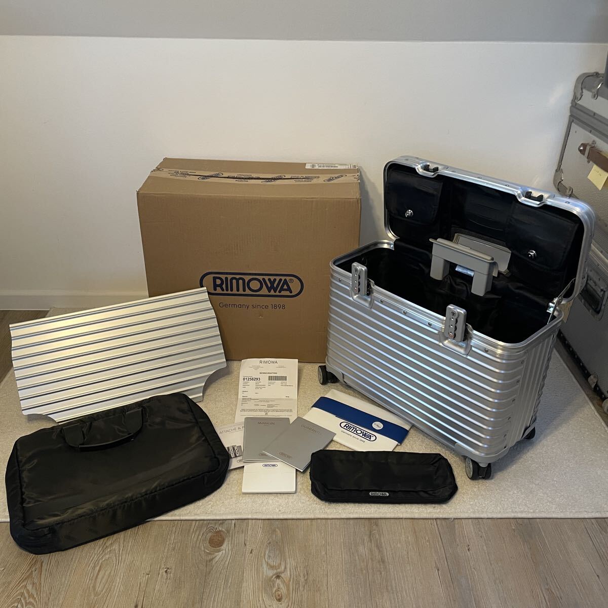 付属品:ボタン付きポーチ、RIMOWA ロゴ入りカバー、小物ケース、PCケース、アルミニウム製ディバイダー、取扱説明書、保証書
