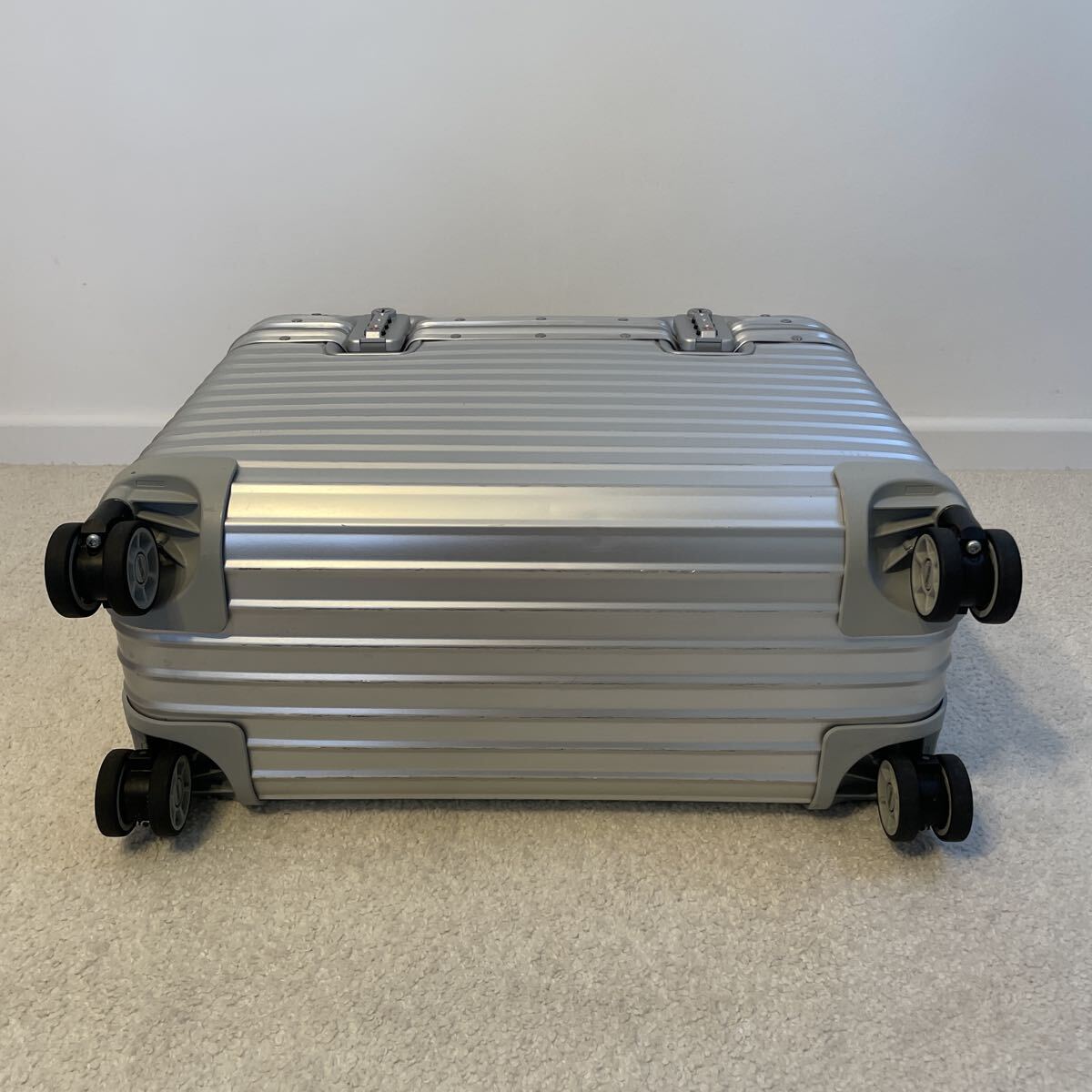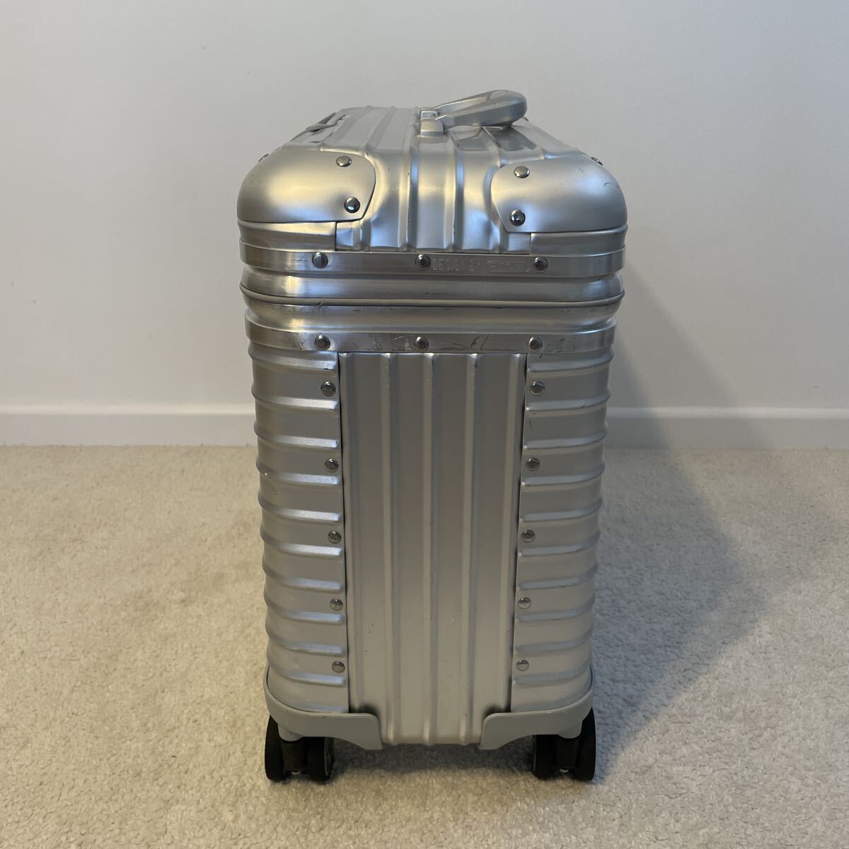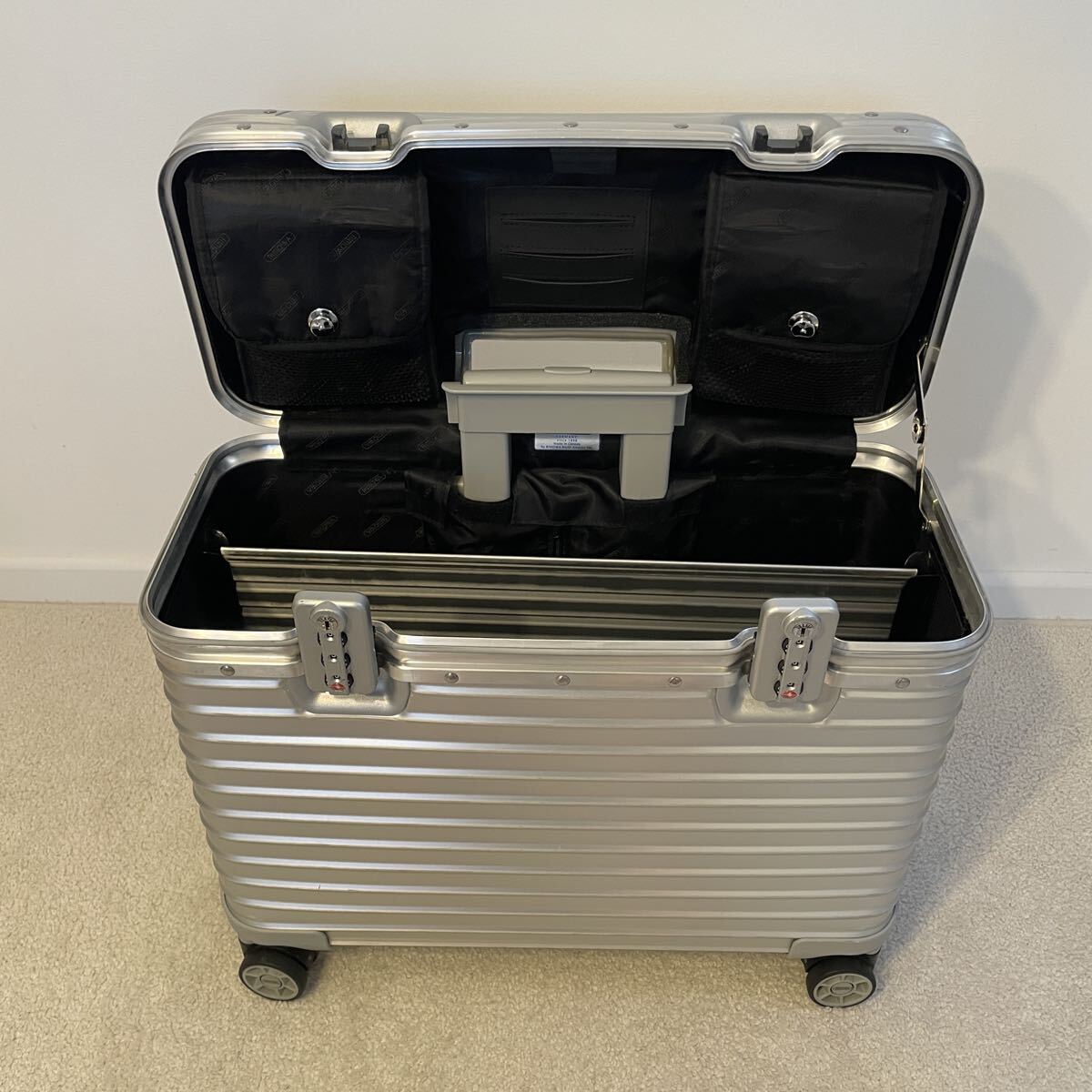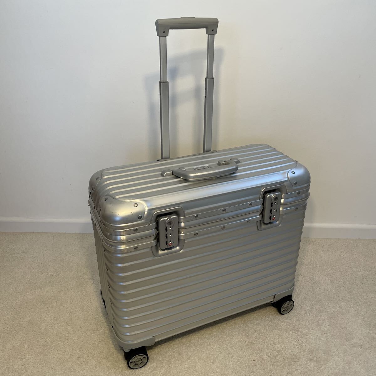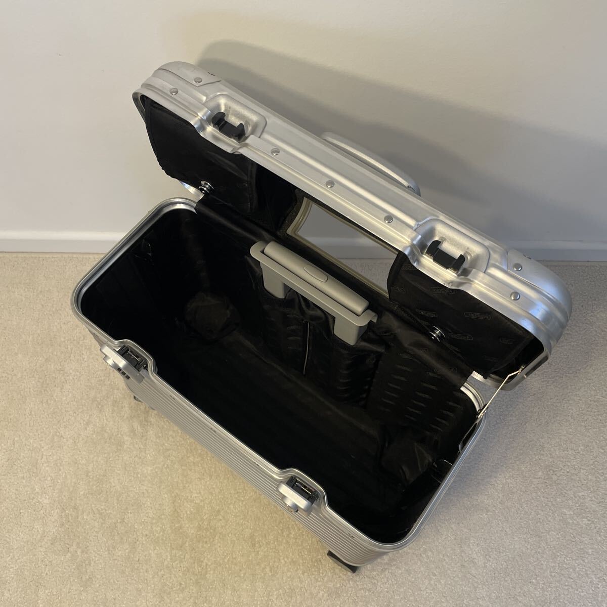 のカナダ生産の最終モデルです。(その後の復活でRIMOWAのロゴマークがアルミプレートでなく本体への印刷になってしまった)現在のLVMHモデルでもパイロットケースは不定期販売で新品購入は困難となり、入手が困難な希少モデルです。