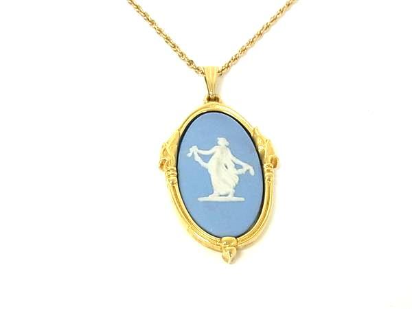 WEDGWOOD ウェッジウッド ジャスパー カメオ クリップ式 イヤリング ネックレス アクセサリー 2点セット ゴールド系×ブルー系 DI5670