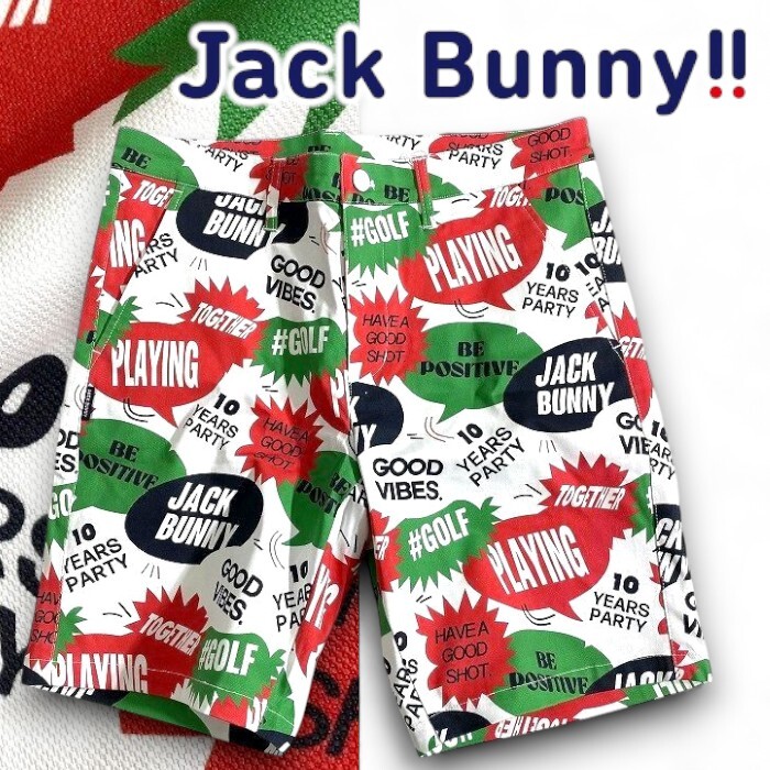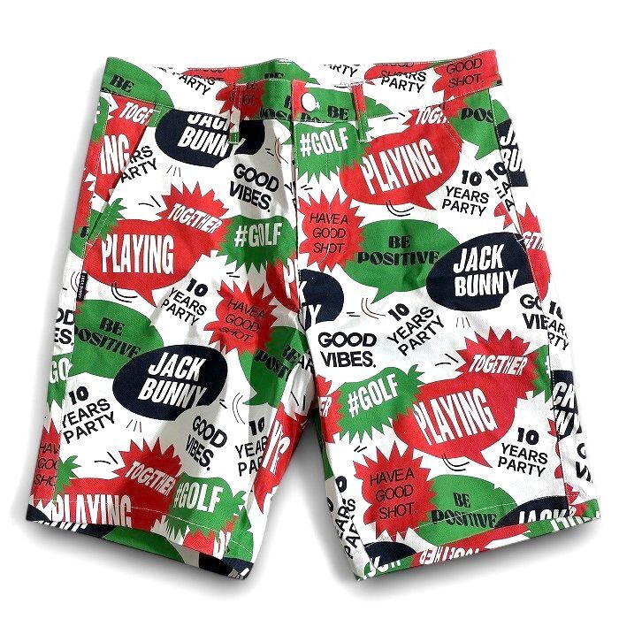 Jack Bunny!! by PEARLY GATES ジャックバニー パーリーゲイツ 新品 定価1.5万 吸水速乾 コットン混ツイル スピーチバルーン柄 総柄 ストレッチ ショートパンツ ショーツ ゴルフウェア 3132319 031 4 ▲015▼50904w03 | |||