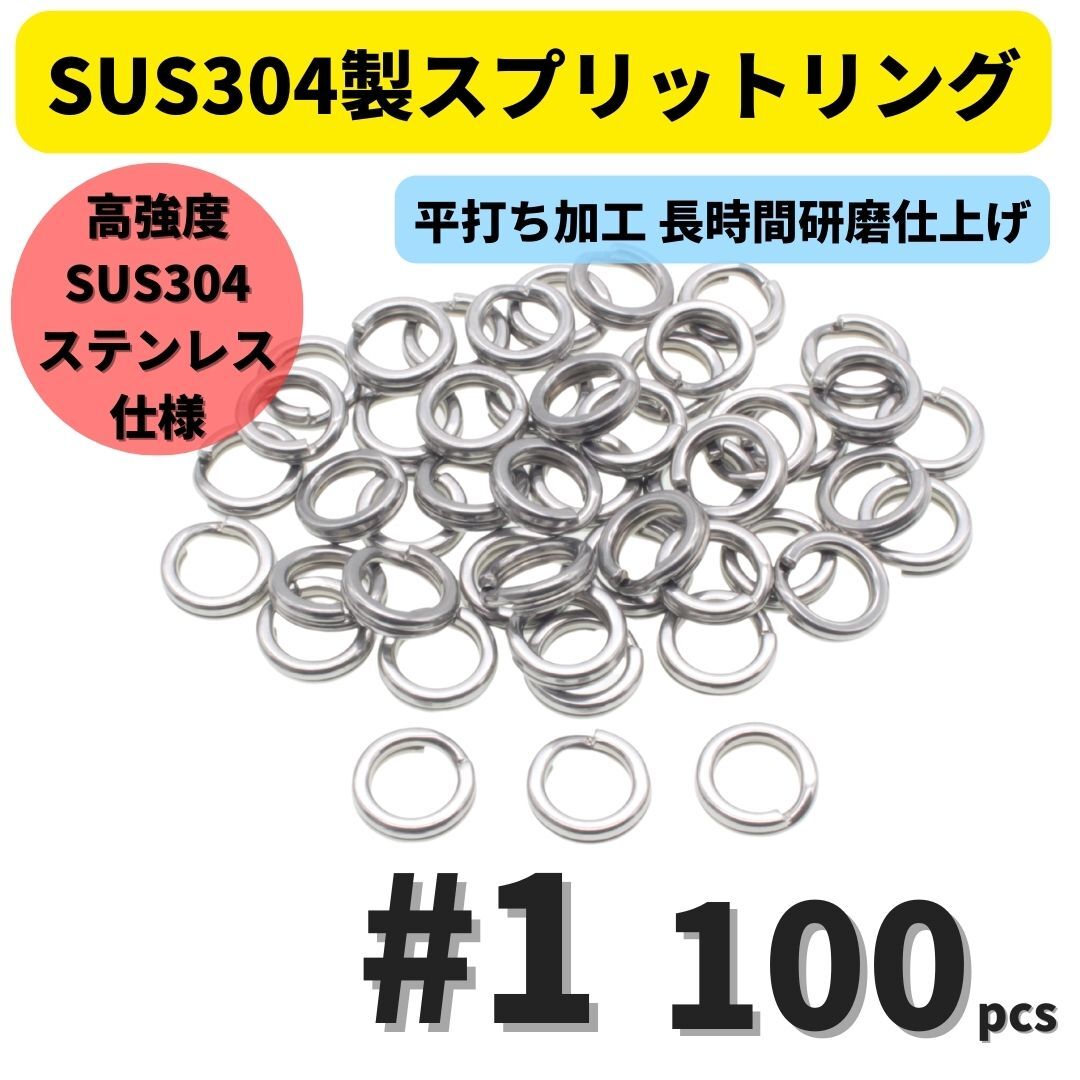 【送料無料】最強素材! SUS304 ステンレス製 強力 平打ち スプリットリング #1 100個セット ソルト対応品 長時間研磨
