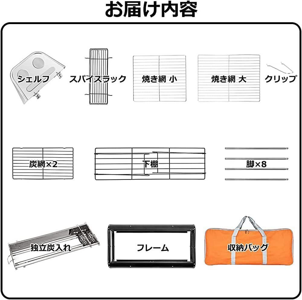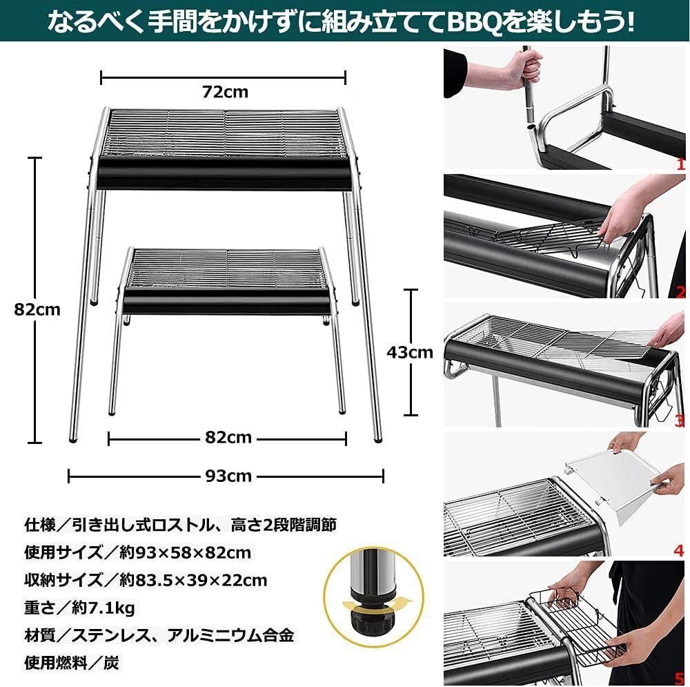 バーベキューコンロ バーベキューグリル 引き出し式 ロストル 大型 ステンレスグリル コンロセット 4~7人用 アウトドア キャンプ BBQ