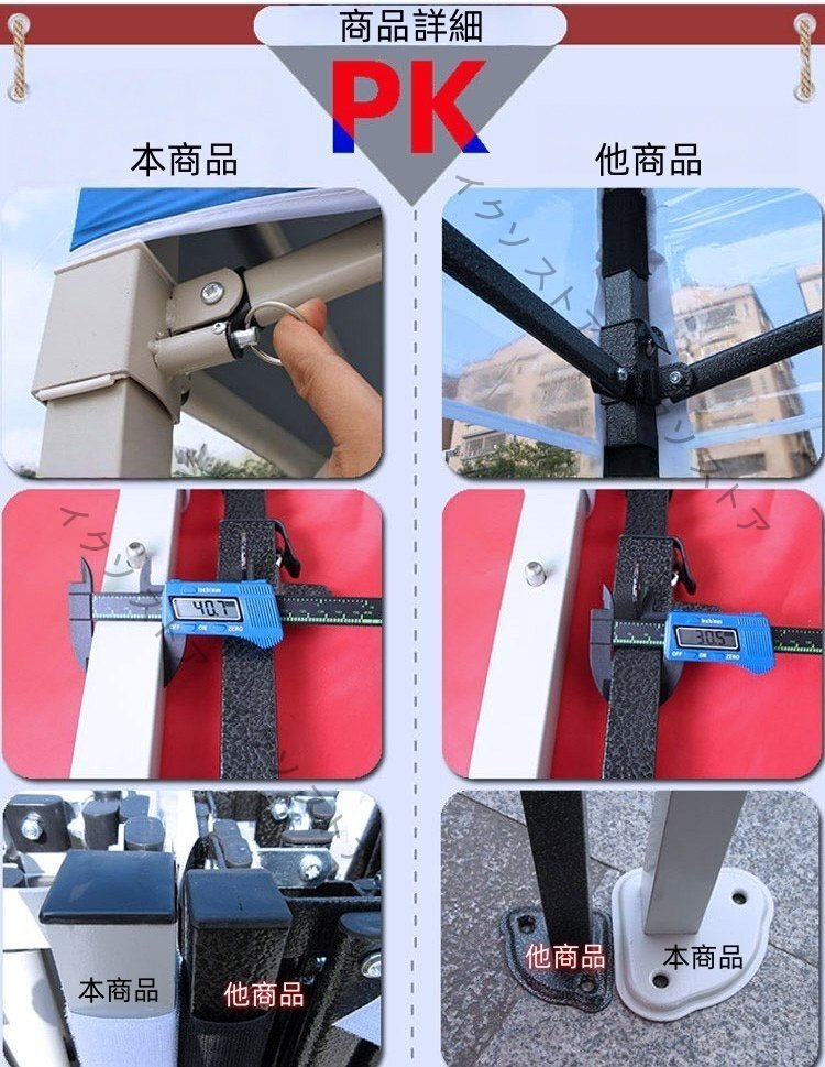 商品説明 材質:厚め鉄フレーム+透明PVCシート *本出品ページの価格の対象サイズ+タイプ:「3*3M+トップシート+3面側シート」です。 *別のサイズとタイプをご希望の場合では、気軽にご連絡ください。迅速にご案内致します。 1)本商品シリーズのサイズ: 設計サイズ:2*2M「実物実測サイズ:約2*2M」 設計サイズ:2.5*2.5M「実物実測サイズ:約2.4*2.4M」 設計サイズ:2*3M「実物実測サイズ:約2*2.94M」 設計サイズ:3*3M「実物実測サイズ:約2.9*2.9M」 設計サイズ:3*4.5M「実物実測サイズ:約2.9*4.3M」 設計サイズ:3*6M「実物実測サイズ:約2.9*5.8M」 2)本商品シリーズのタイプ:トップシートのみ付き、トップシート+3面側シート、トップシート+4面側シート 高級品質&耐久性 簡易アウト用品 日よけ 防雨 寒冷の天気で寒い風を遮断 簡易なテント倉庫 物置 イベントテント/祭りテント/運動会テント/活動テント/花ハウスなどで活用されています。 使用場所:幅が広い、屋内外にも使用可 ※本商品はお客様より組み立てする必要です。 ※使用の際には保護手袋などを着用することをお勧めします。 キーワード検索:アウトドアテント、キャンプテント、イベントテント、避難用テント、DIY工具テント、販促テント、植物温室、花ハウス、野菜温室 【発送詳細】 ◆入金確認発送させていただきます。 ◆配送番号は反映次第ご連絡致しますので、ご安心ください。 【注意事項】 ◆商品は検品後、問題のない商品を発送致します。 ただし、微細な汚れ.等が細かな見落としもあるかもしれません。 念のため神経質な方や、完璧なお品物を求める方は ご注文をお控えください。 本商品は特殊類の製品で発送したら、返品返金の対応はしません。 大変恐れ入りますが、ご理解いただける上でご入札お願いいたします。 ◆素材感や色合いの感じ方には個人差があり、撮影状況、PC環境により色合いが異なる場合がありますので、ご了承の上ご購入をお願いいたします。 ◆商品のサイズは採寸方法によって、若干な誤差が生じる場合はあります。ご了承ください。 ◆悪戯入札が多いので落札後の理不尽なキャンセルは、「Yahoo!ガイドライン、入札と購入に関するルール違反」として、 Yahooの方に利用停止、ID削除の要請を致します。責任を持って入札されます様お願い致します。 | |||