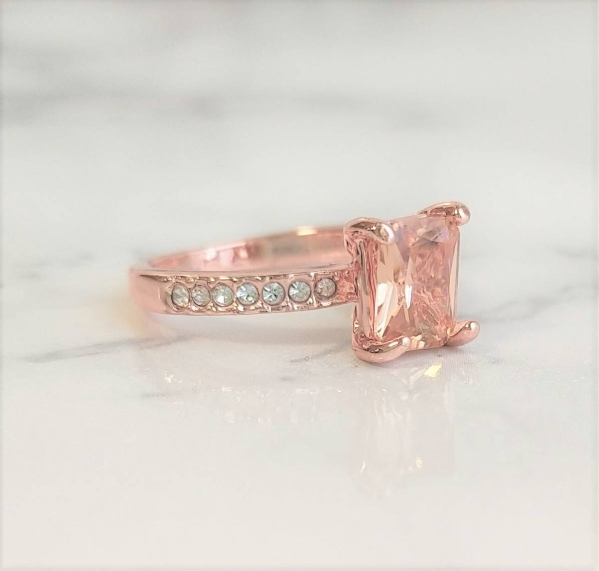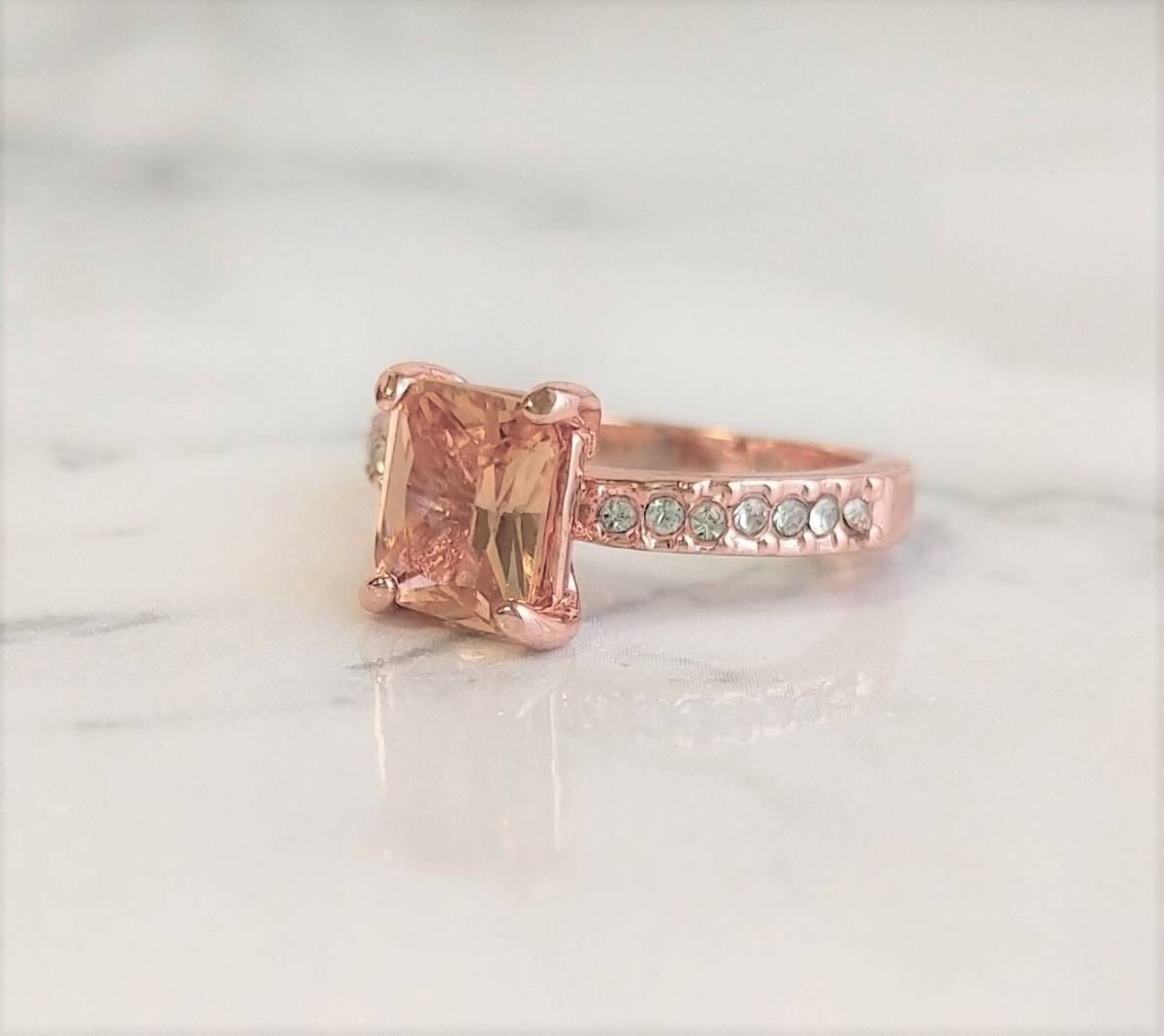 スクエアリング ピンクゴールド 12号 ジルコニア 普段使い 指輪 スクエア リング パパラチアサファイアカラー ピンクオレンジ