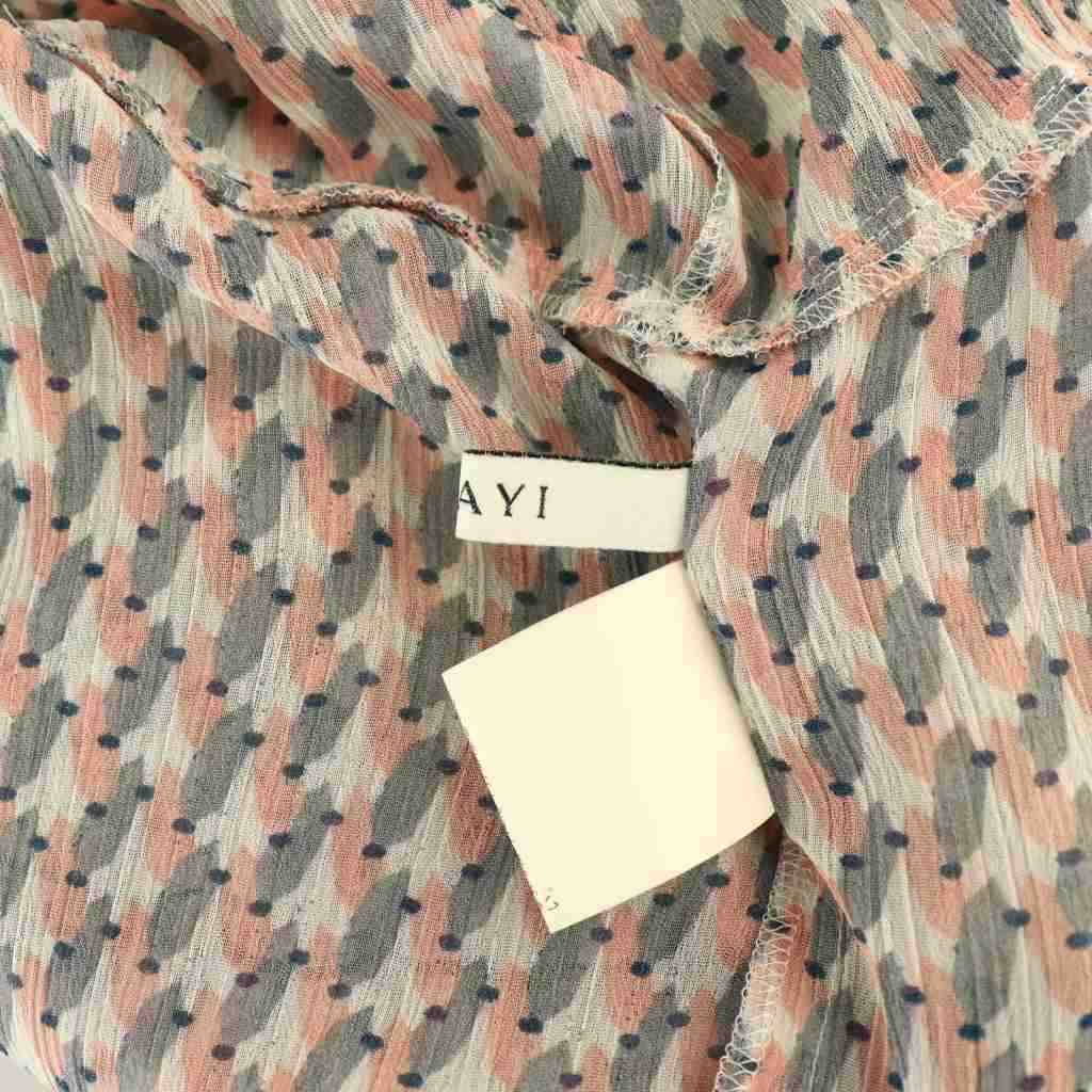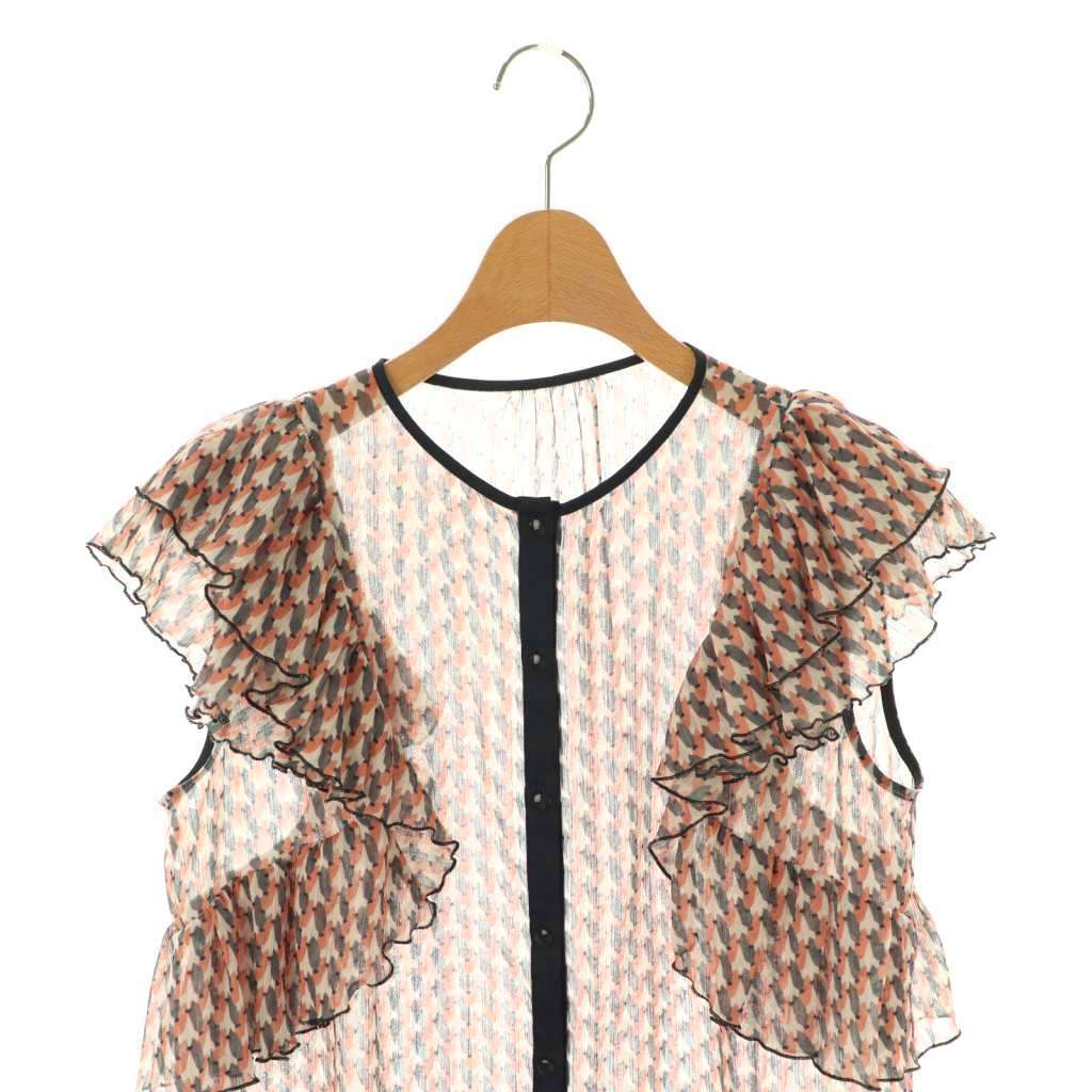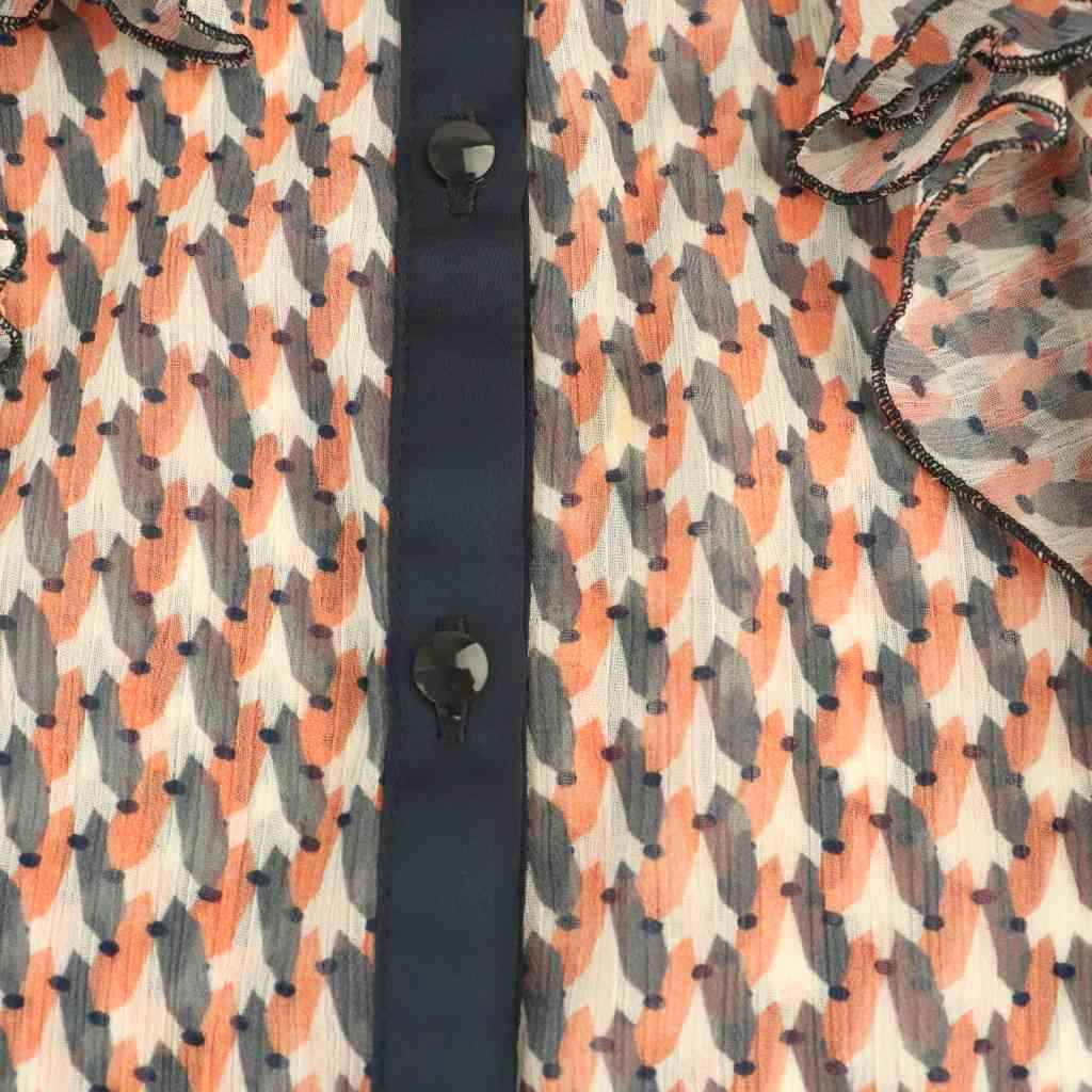 アナイ ANAYI ジオメトリックプリントラッフル ブラウス 半袖 総柄 38 白 ホワイト 紺 ネイビー /AT ■OS レディース