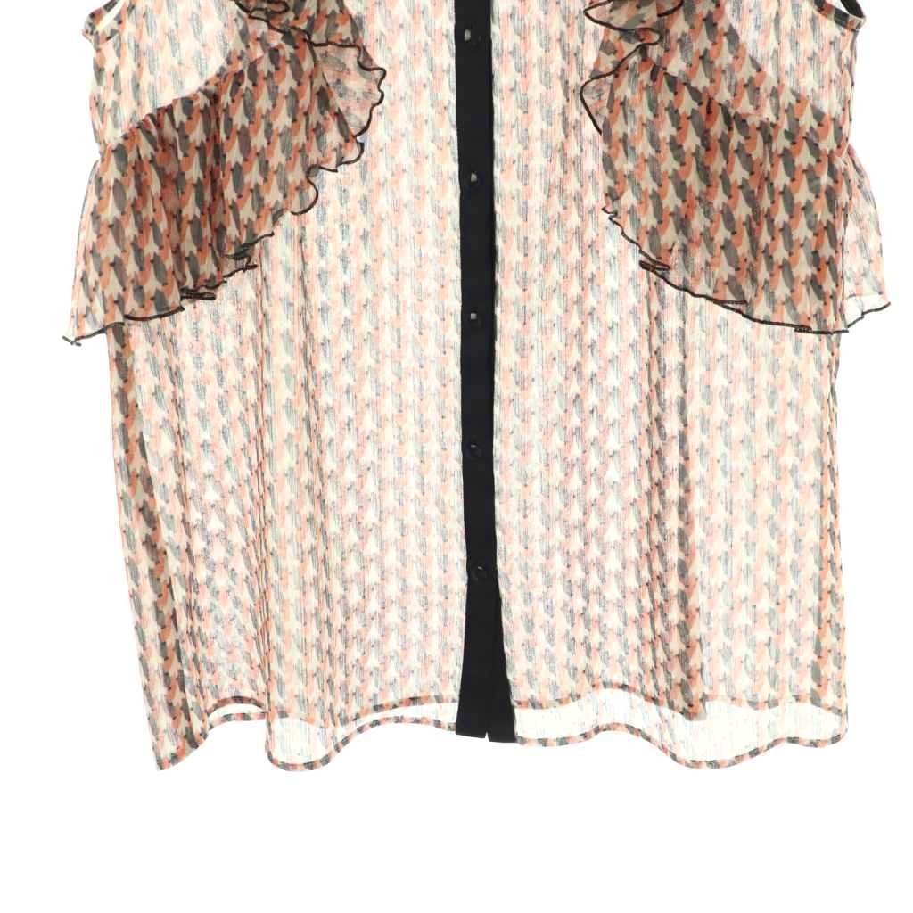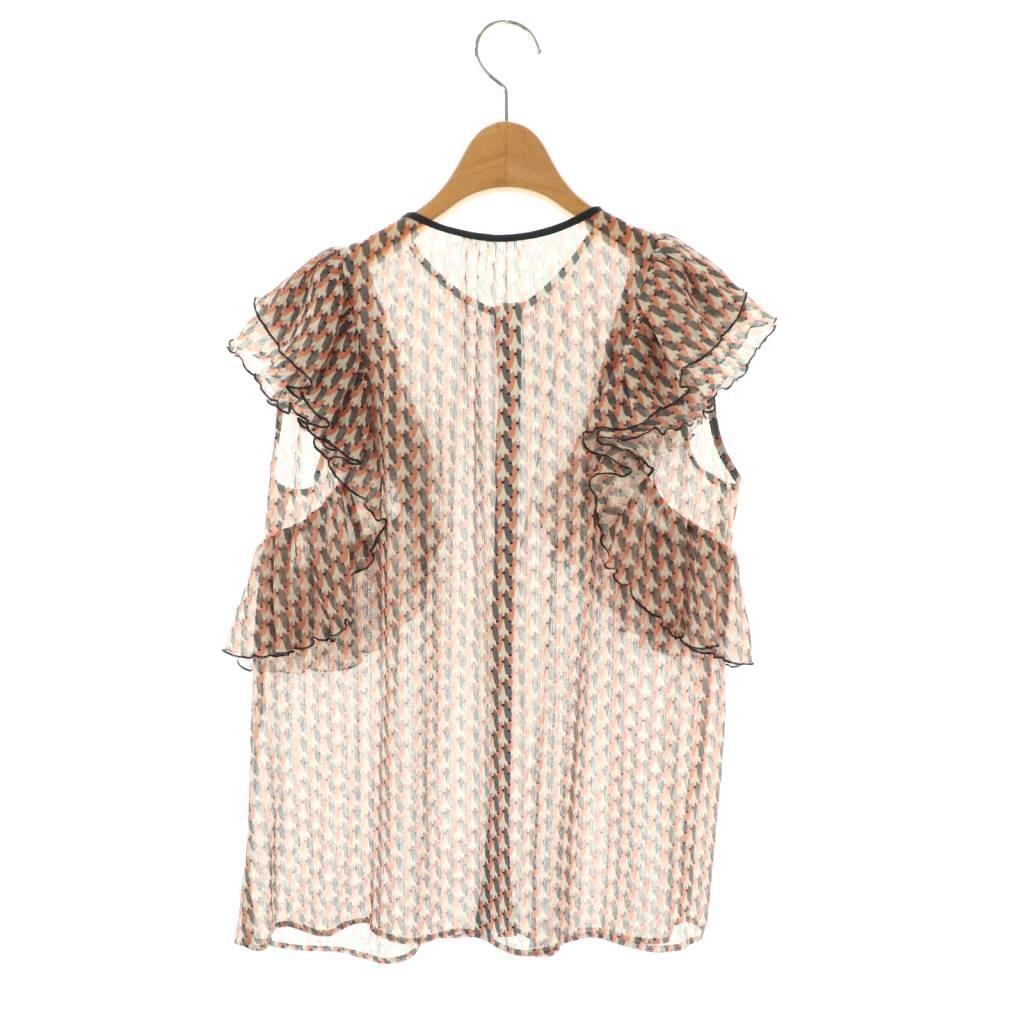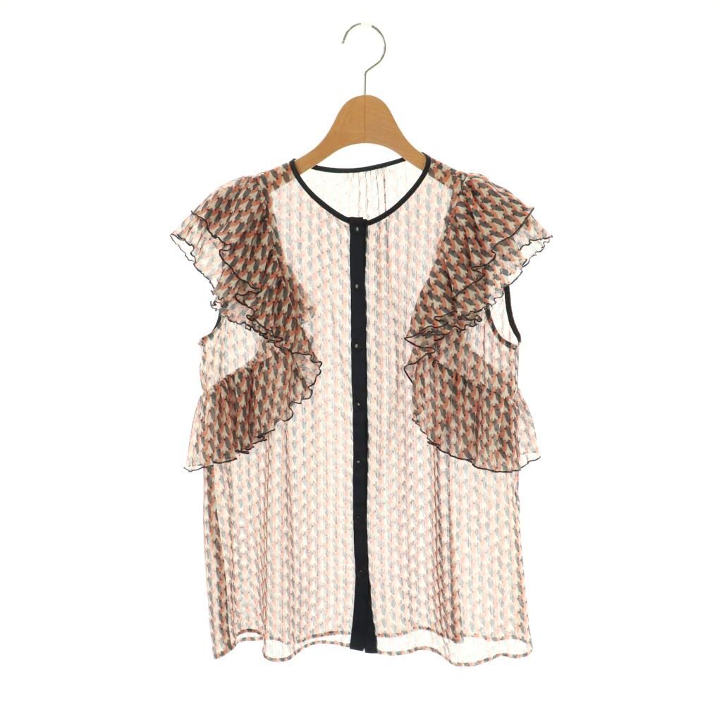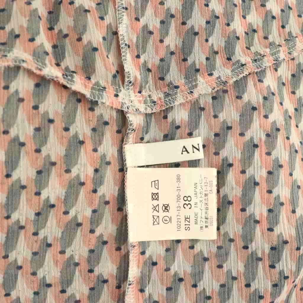 アナイ ANAYI ジオメトリックプリントラッフル ブラウス 半袖 総柄 38 白 ホワイト 紺 ネイビー /AT ■OS レディース