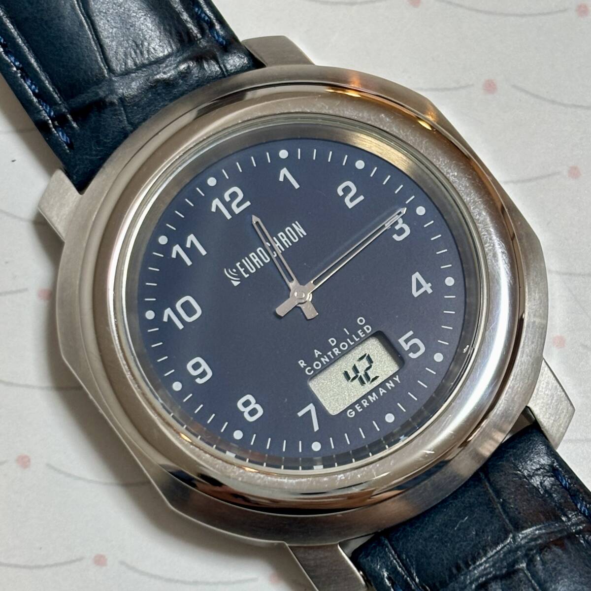 ジャンク 訳あり EUROCHRON 時計 腕時計 40mm  電波時計? 長期保管 ネイビー