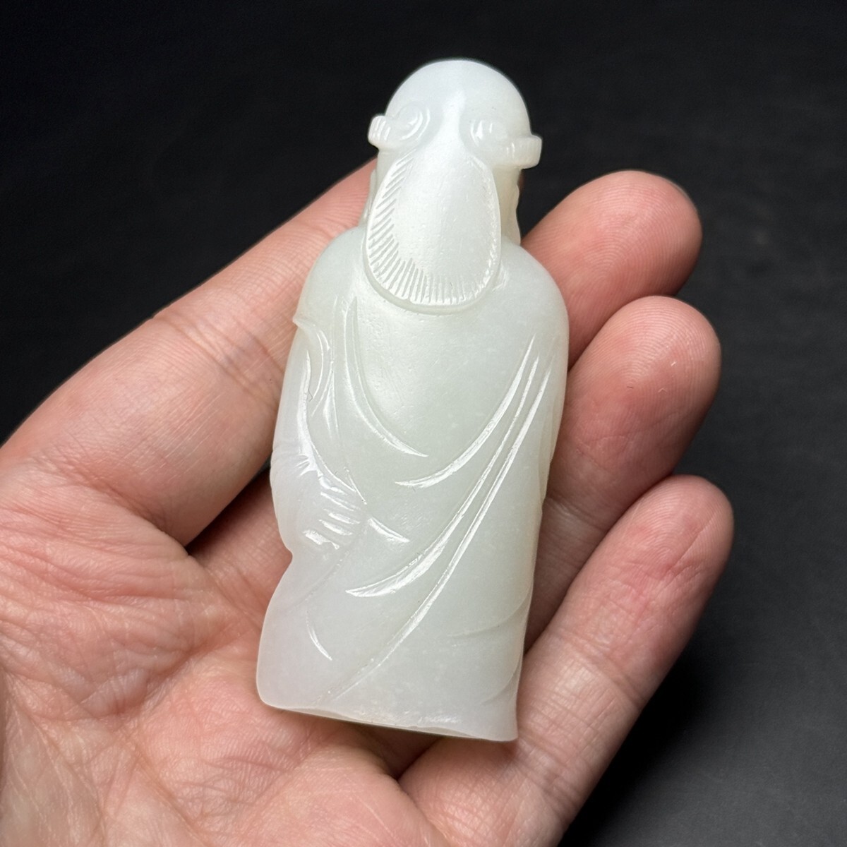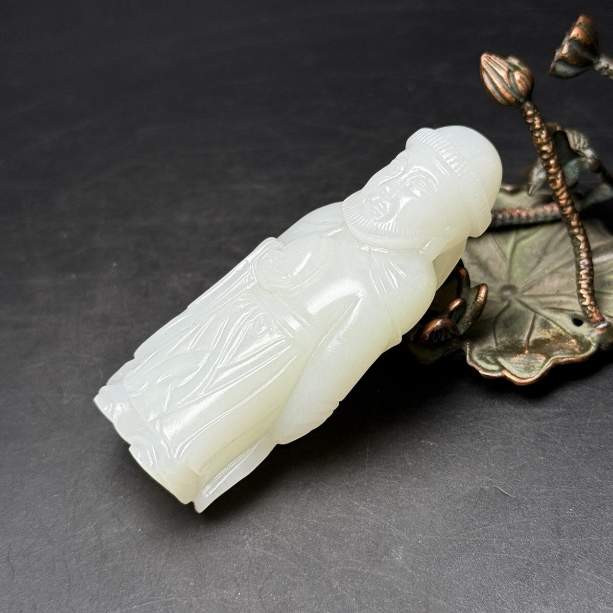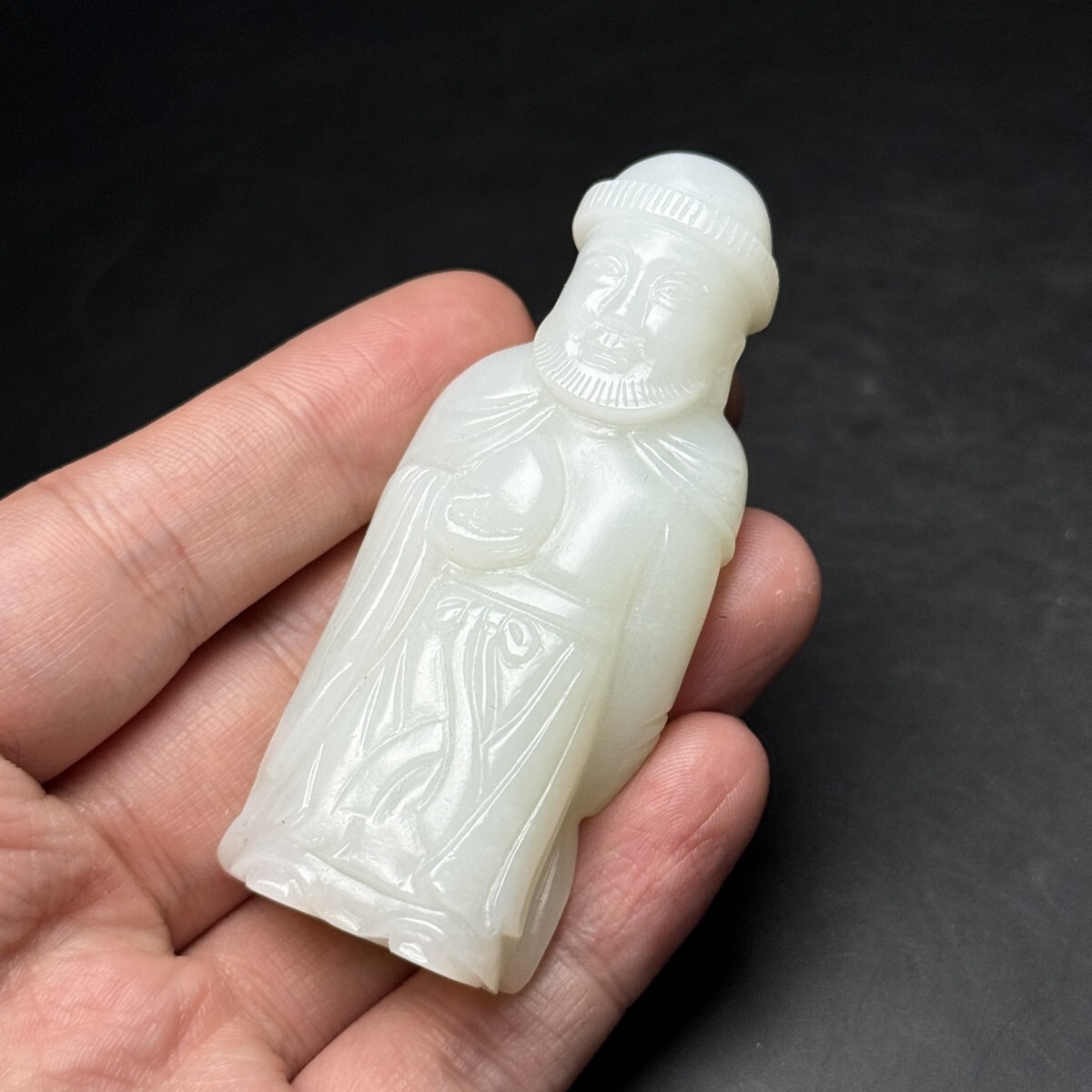 「時代物 和田玉 白玉彫り 胡人」極細工 擺件 中国古賞物 古美術 旧蔵出