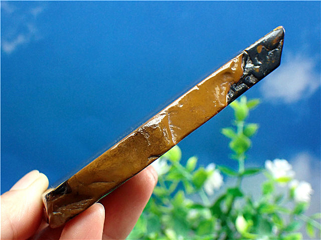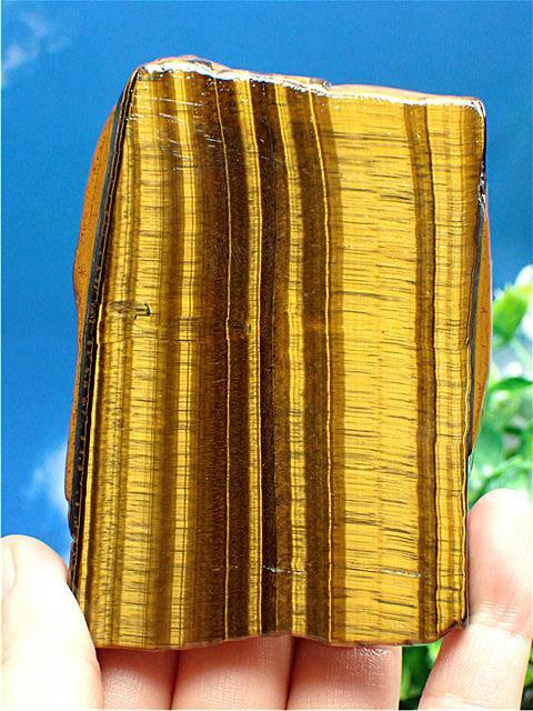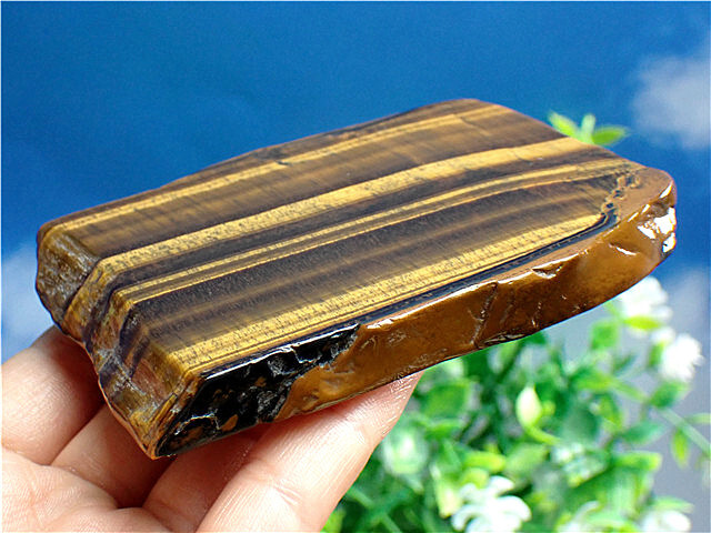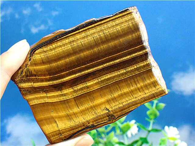 産地:南アフリカ共和国 ※硬さ:7 ※タイガーアイを研磨した石は、表面にキャッツアイ効果(別名:シャトヤンシー)という特性を帯びることで知られています。名前の由来は、英名和名ともにこの特性に由来して名付けられました。