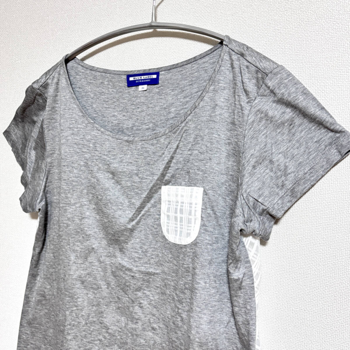 【バーバリーブルーレーベル】背面シアー 半袖カットソー グレー 38