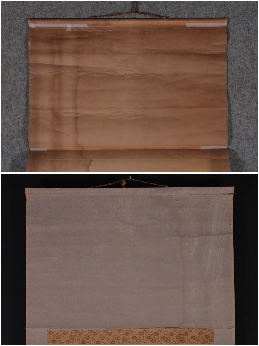 (例:シミ・イタミ・シワ・剥脱・ヤブレ・ヤケ・変色・紐のイタミ・軸先の破損等)