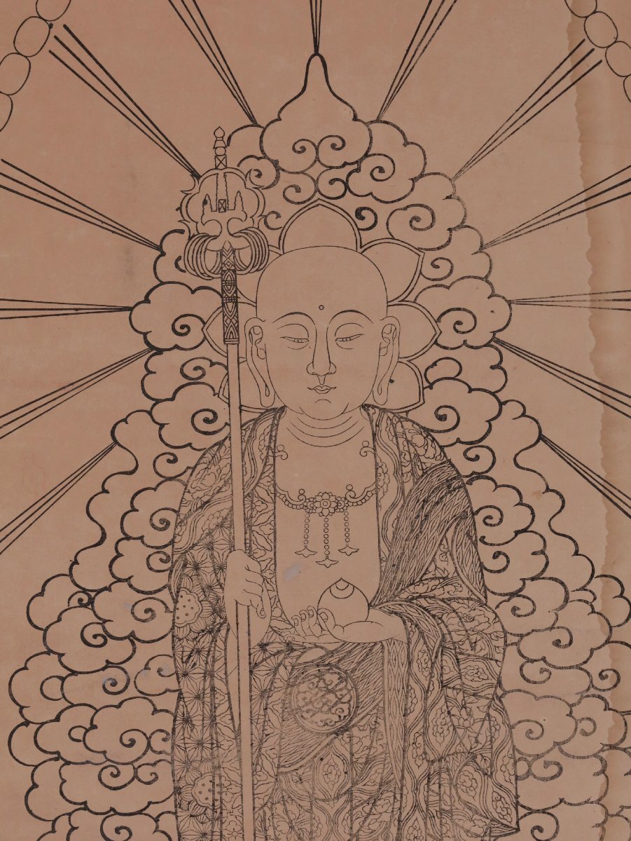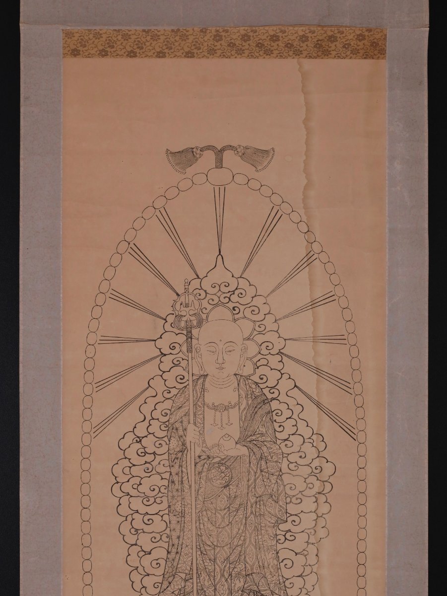 【木版画】吉】12851 地蔵菩薩像 智證大師 円珍 天台宗 延命山 福蔵寺 仏画 仏教 中国画 掛軸 掛け軸 骨董品
