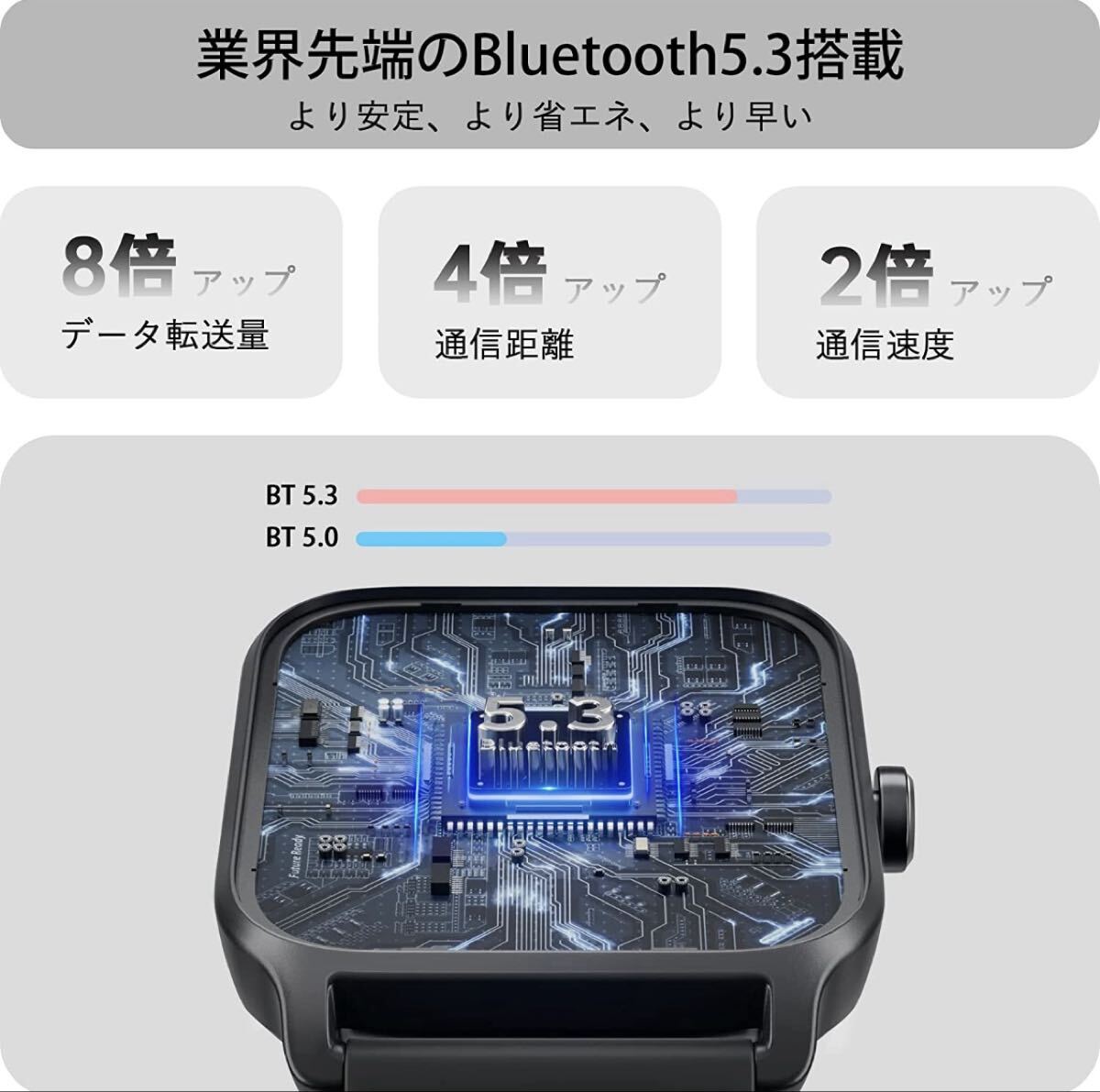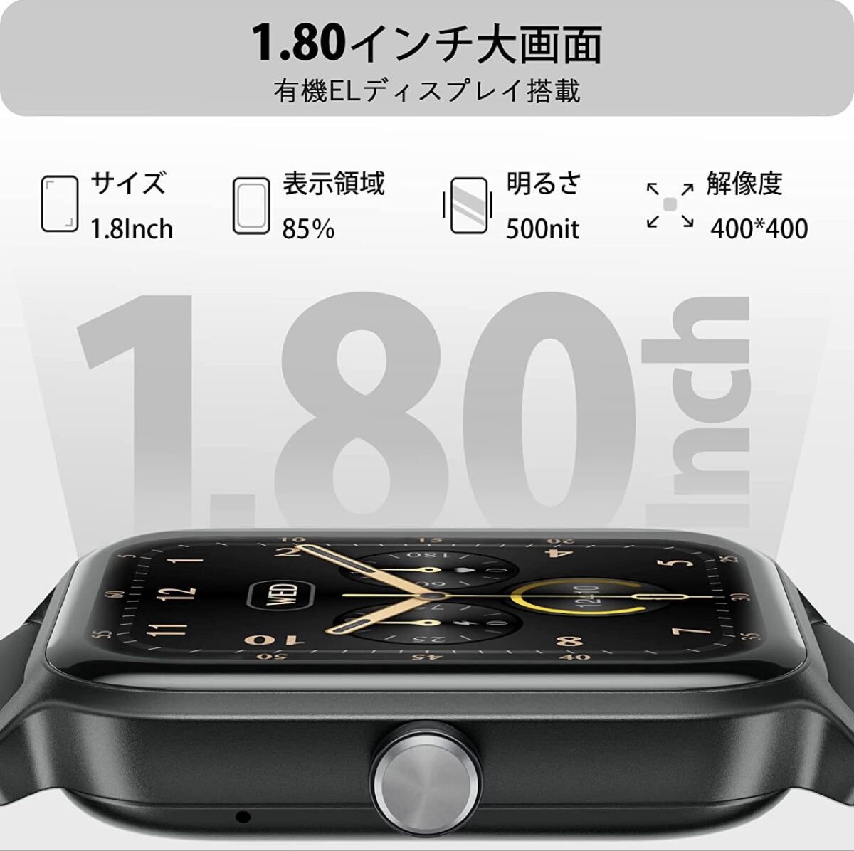 【Bluetooth5.3搭載&1.80インチ大画面】Bluetooth5.0に比べ大きく進化しました。データ転送量は8倍アップ、データ転送速度が2倍アップ、通信範囲が4倍アップ、もっと安定、速い。本製品は、画面の文字盤をお好みでカスタマイズすることができます、好きな写真をスマートウォッチのデスクトップに変換可能です。更にアプリ内は100種類の文字盤を自由にダウンロード可能です。