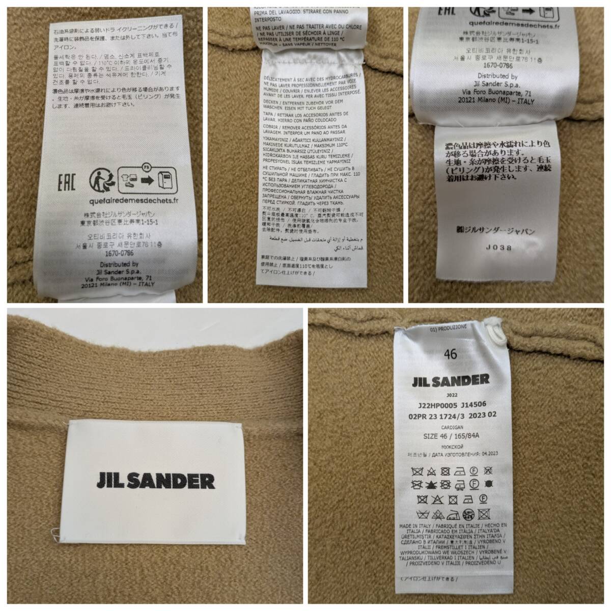 JIL SANDER WOOL CARDIGAN ジルサンダーウール カーディガン I22HP0005 J14506 ベージュ系 サイズ 46
