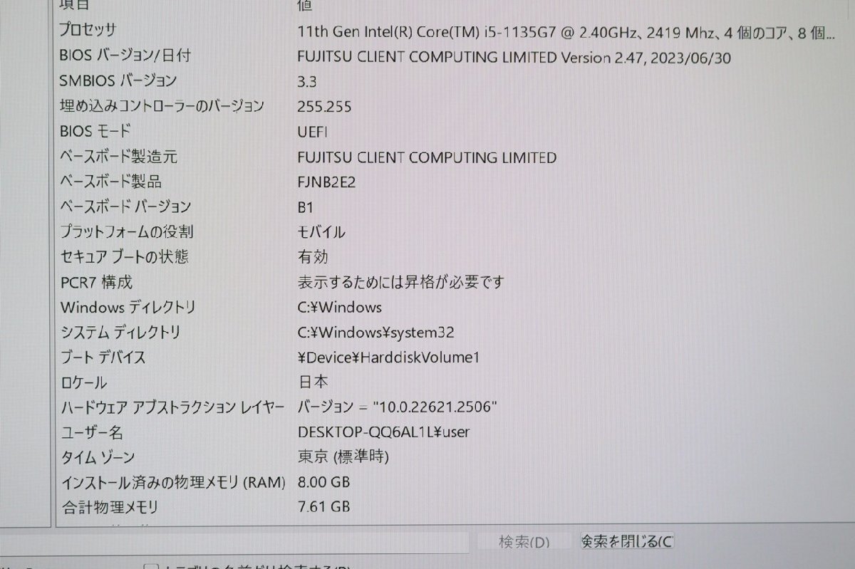 N 1円♪【 ジャンク品 】FUJITSU / LIFEBOOK U9311/FX / CPU:core i5-1135G7@2.40GHz / メモリ:8G / SSD:256GB / Windows11 Pro