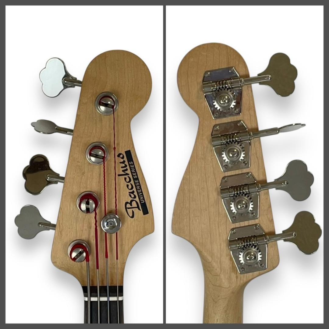 お求めやすい価格からは想像できない品質の高さが魅力のバッカス ユニバースシリーズのエントリーモデル BJB-300シリーズです。 安いだけのノーブランドギターなどと違って、バッカスの名に恥じぬようしっかりと調整ができ 本格的に弾けるベースなので、初心者の方でも安心してお使いいただけます。 バッカスオリジナルピックアップを搭載したジャズベース仕様で様々なジャンルの音楽に対応できる繊細なサウンドメイクが可能です。 ボディにはアルダー材、ネックにはメイプル、指板はローズウッドを使用しており、 中低音域のしっかりとした伝統的なベースサウンドをお手軽にお楽しみいただけます。