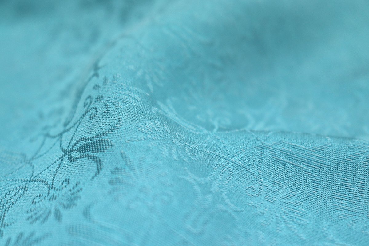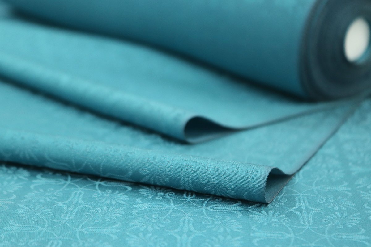 しっとりとした風合いの生地は、ターコイズブルーでございます。