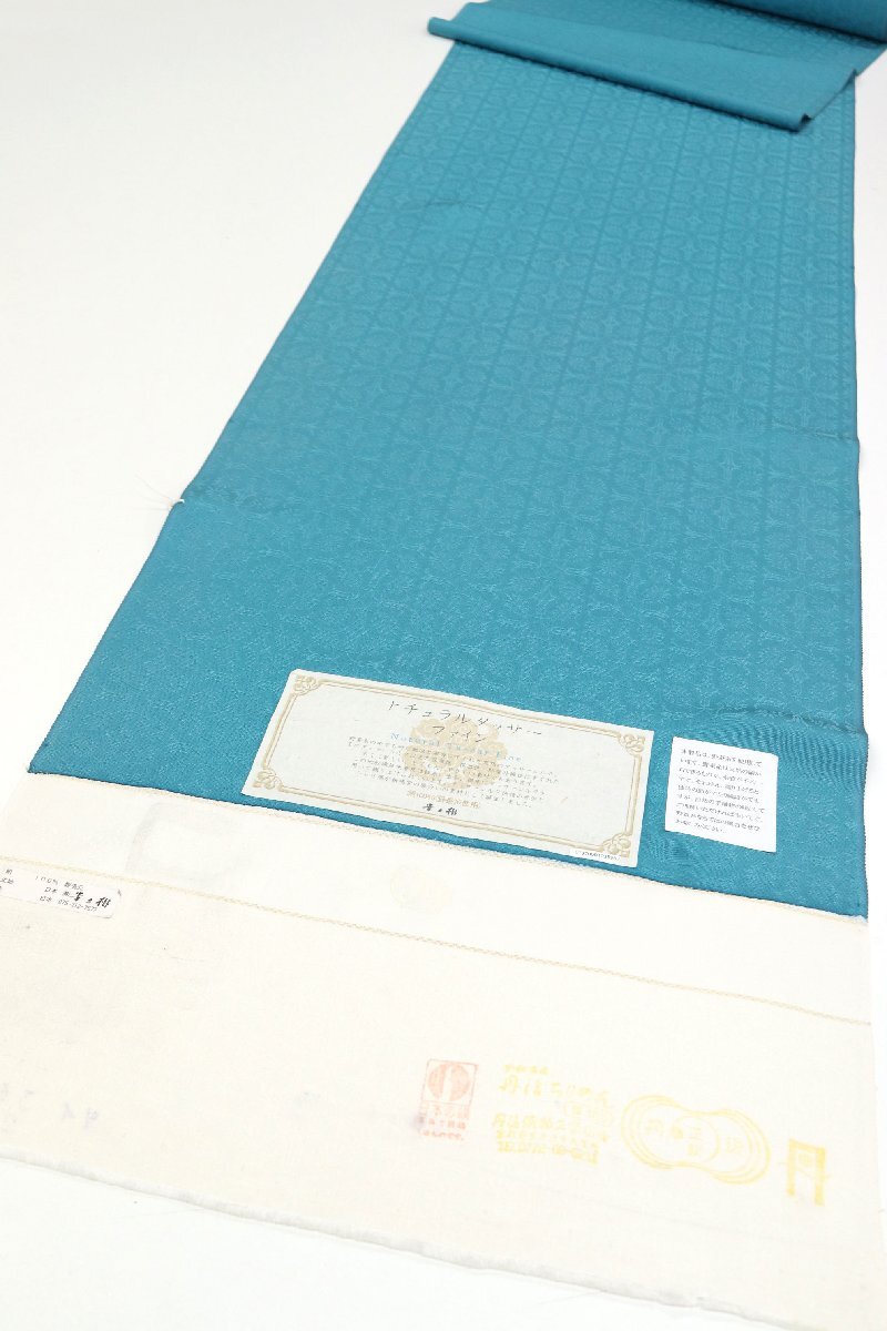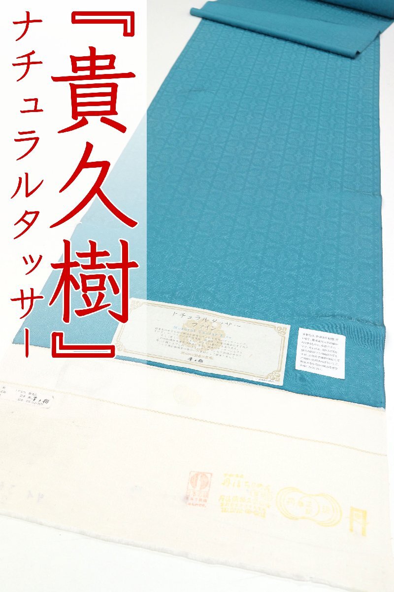 和遊館 即決kta2924 貴久樹 ナチュラルタッサー ファイン 野蚕糸 地紋 無地 手織 着尺 ターコイズブルー 反物