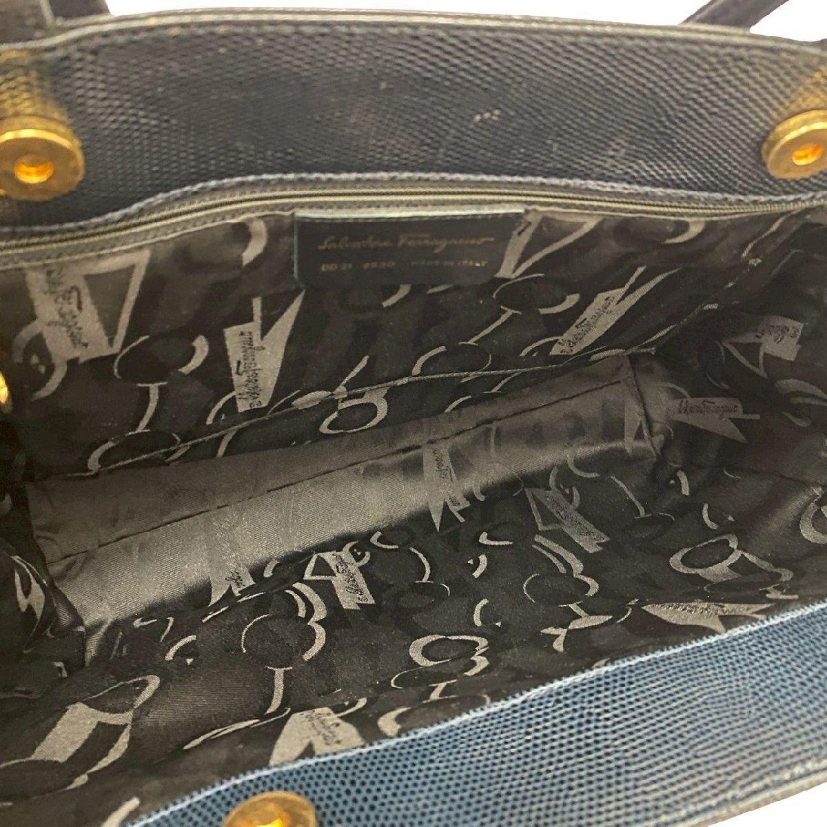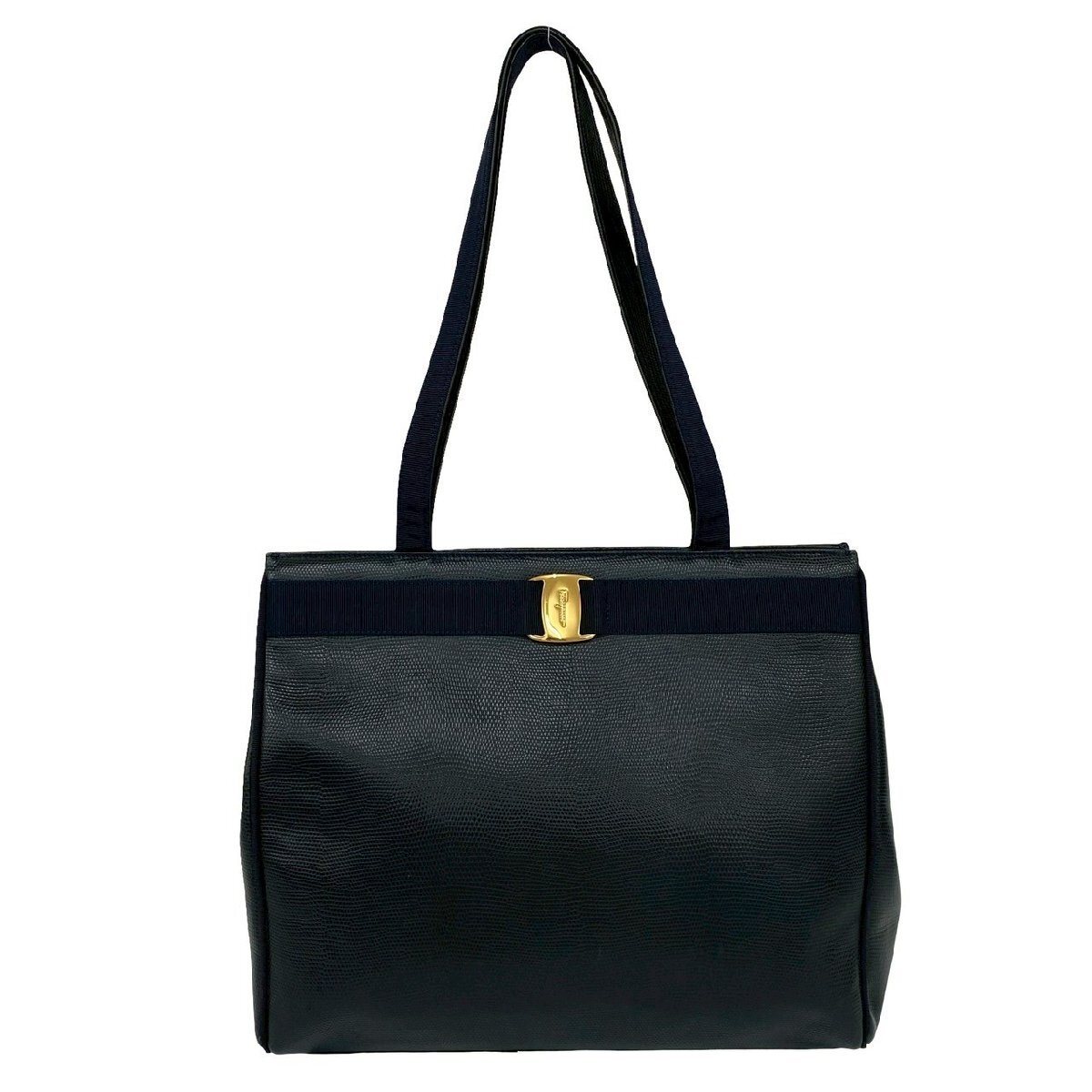 極 美品 Salvatore Ferragamo サルヴァトーレフェラガモ ヴァラリボン 金具 レザー 本革 トートバッグ セミ ショルダーバッグ 紺 39088