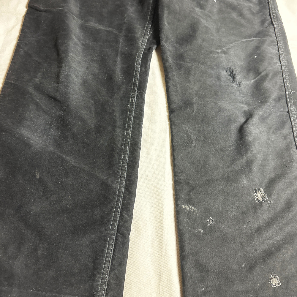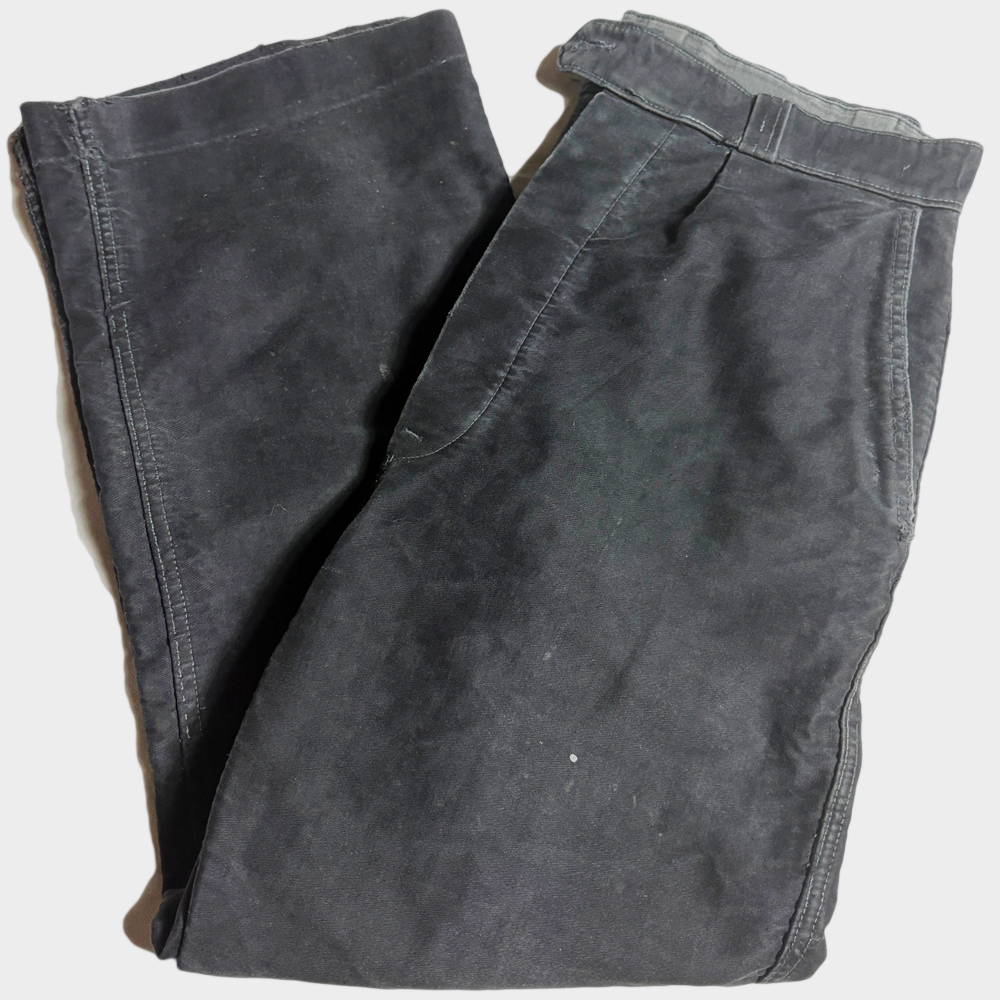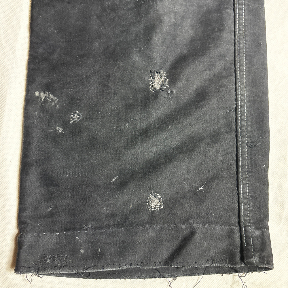 嬉しいベルトループ付きのブラックモールスキントラウザーズ ! 推定40年代後期~50年代頃と思われる、フレンチワークの代表的なブラックモールスキンチョアトラウザーズ が入荷。