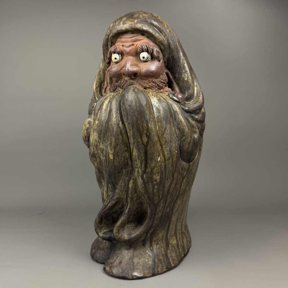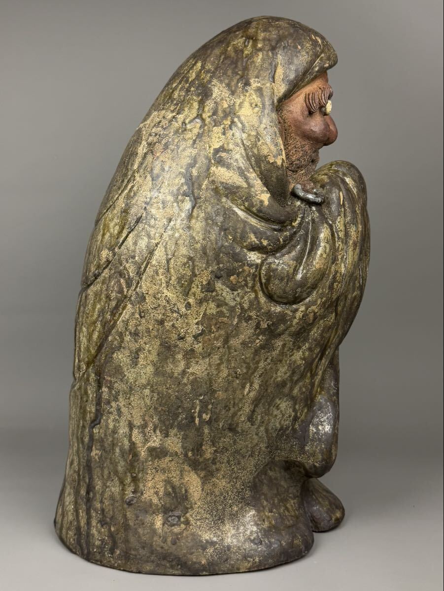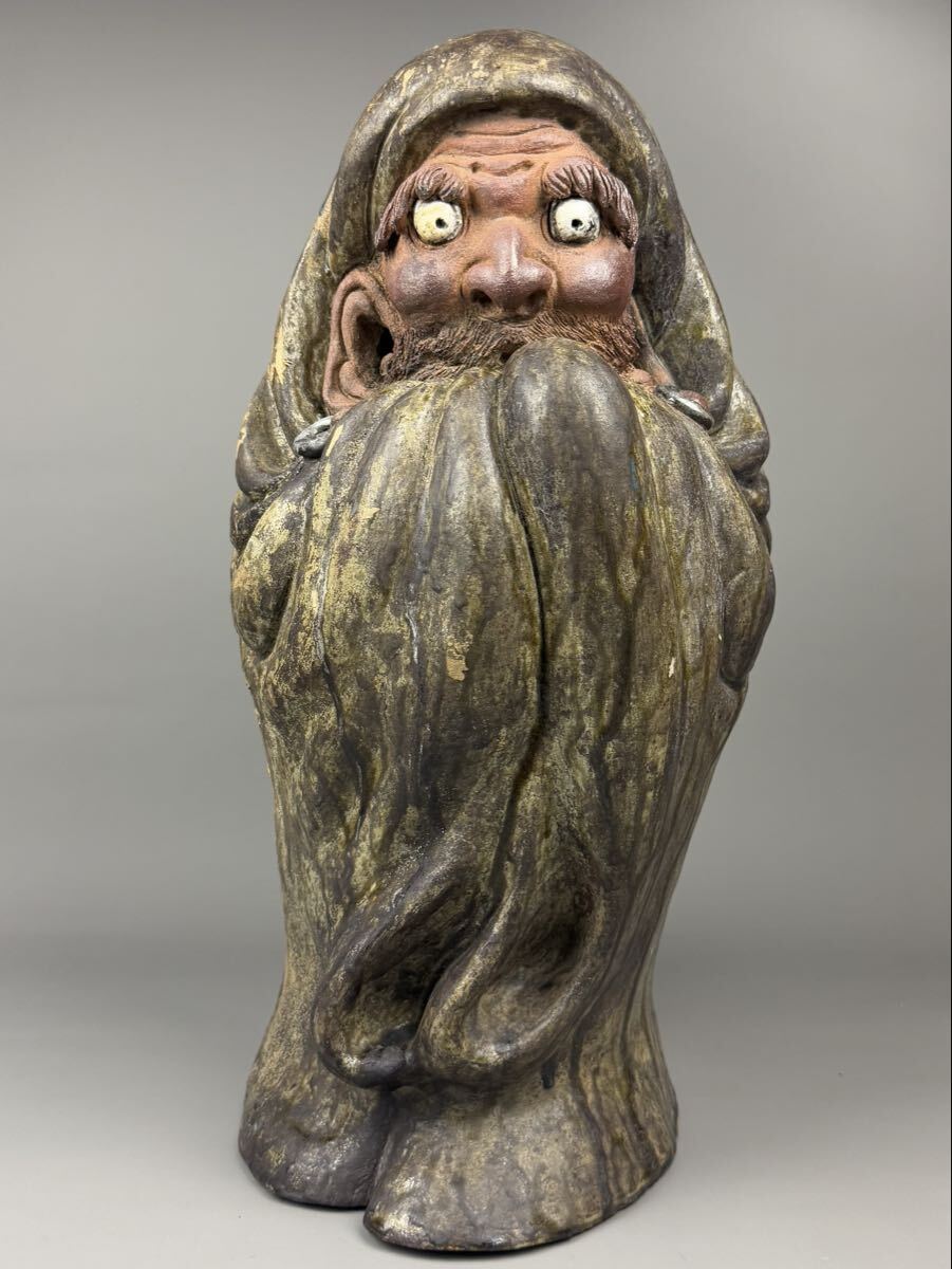 古唐津 達磨 15.7kg 特大 高さ54㎝ 達磨大師立像 縁起物 ダルマ 仏像 唐津焼 作家物 置物 床飾 時代物 郷土玩具