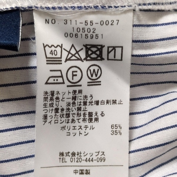 シップス SHIPS - ライトブルー×ネイビー×白 レディース クルーネック/半袖/ひざ丈/ストライプ ワンピース