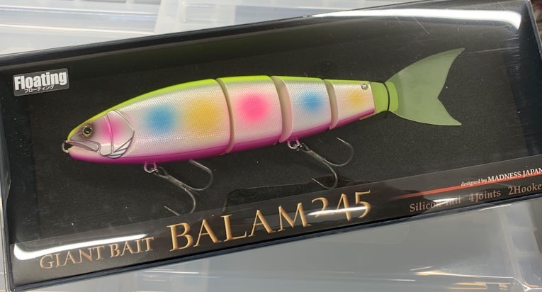 | マドネスジャパン×エクリプス バラム245。245mm、3.7oz。 今までのジャイアントベイトに無かった超高速リトリーブを多連結ボディで可能にし、高速巻きでも安定したスイム姿勢をキープすることで逃げ 惑うベイトを極限まで演出、ストラクチャーに潜む早い動きにしか反応 しないデカバスを仕留めます。 |