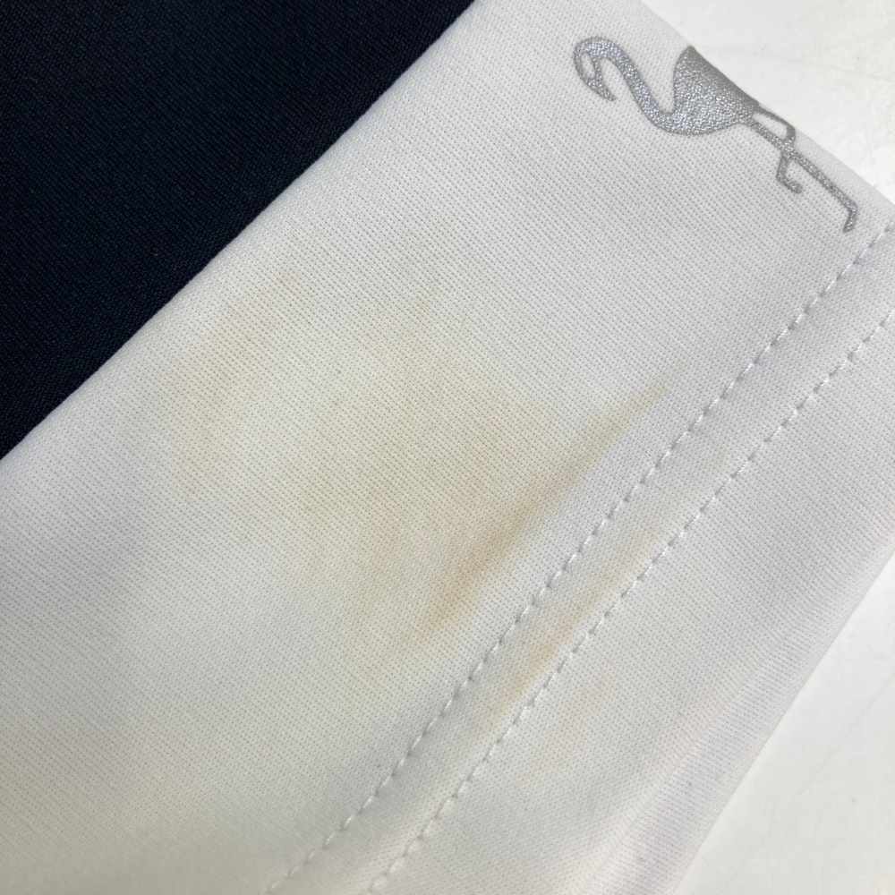 B プリントひび割れ、左袖・バックに汚れ |