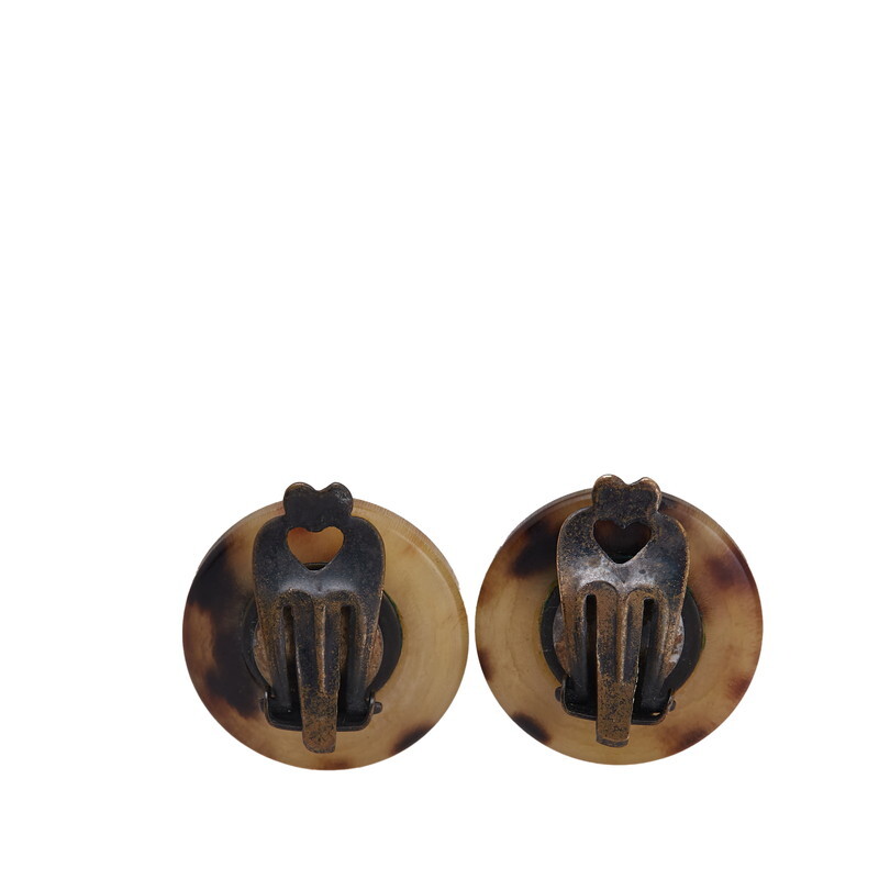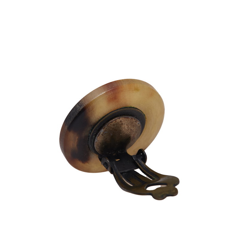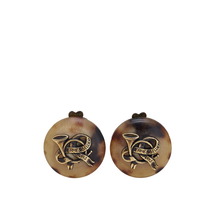 エルメス ラッパ トランペット リボン モチーフ イヤリング ベージュ ブラウン バッファローホーン メッキ レディース HERMES 【中古】