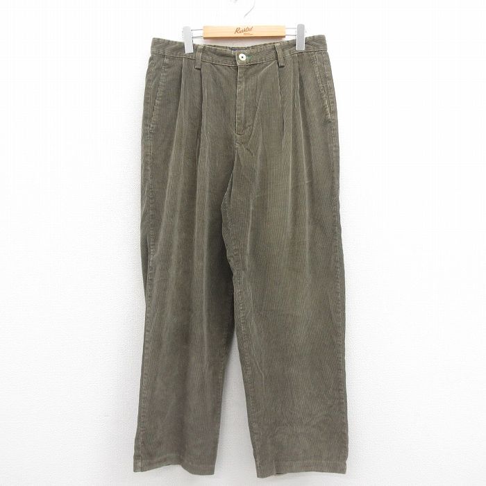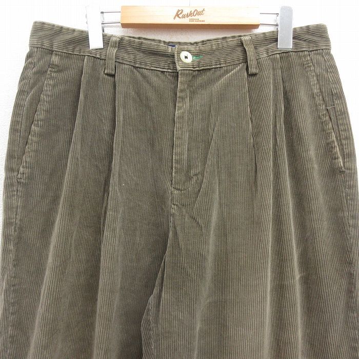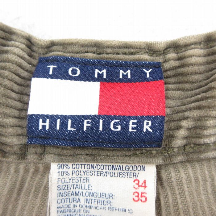 【商品名】 W35★古着 トミーヒルフィガー ブランド コーデュロイ パンツ メンズ 90年代 90s ワンポイントロゴ 太畝 薄ベージュ