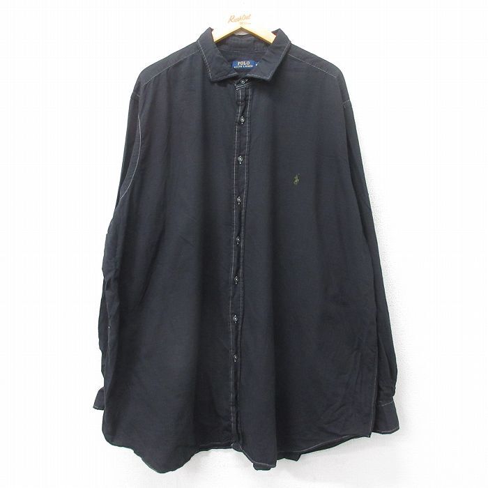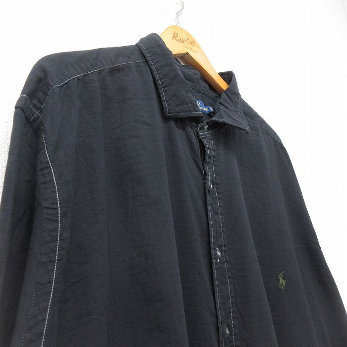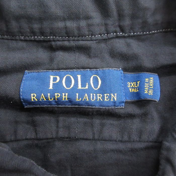 【商品名】 XL★古着 ラルフローレン 長袖 ブランド シャツ メンズ ワンポイントロゴ 大きいサイズ ロング丈 黒 チェック