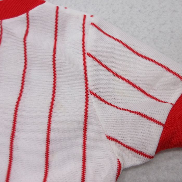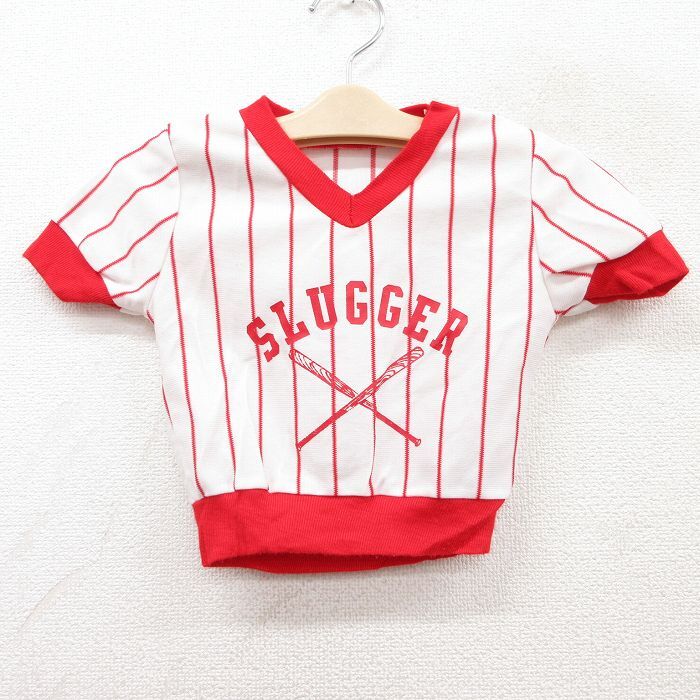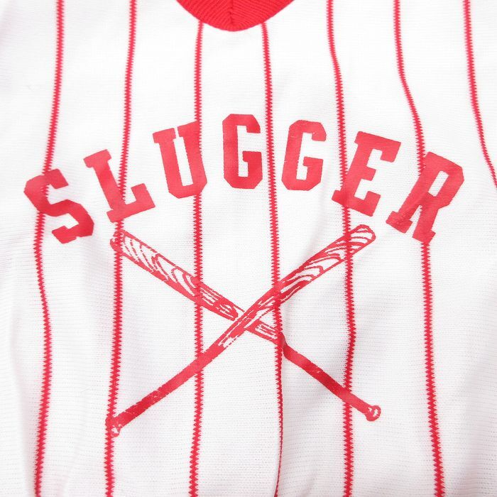 【商品名】 古着 半袖 ビンテージ Tシャツ キッズ ボーイズ 子供服 80年代 80s SLUGGER ベースボール Vネック 赤他 ストライプ