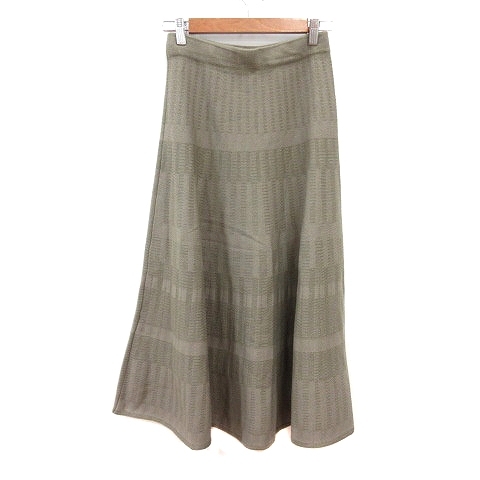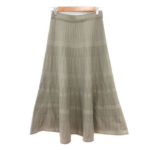 ルージュヴィフ Rouge vif フレアスカート ニット ロング 総柄 38 M ベージュ 緑 カーキ /MN レディース