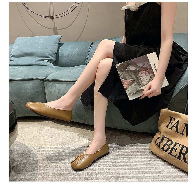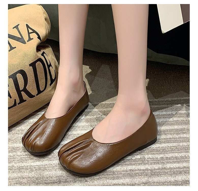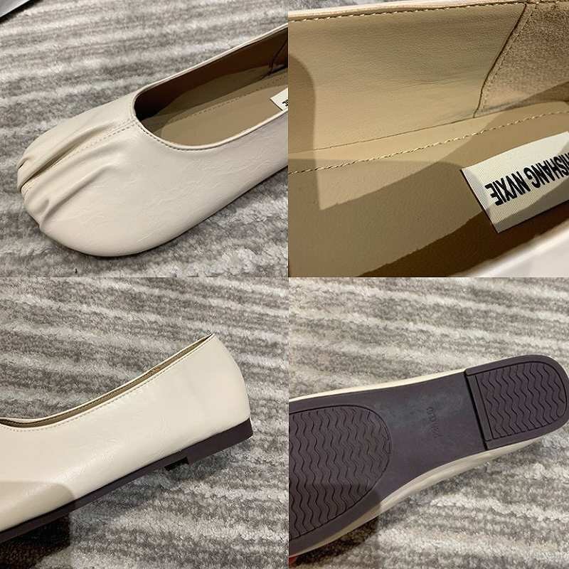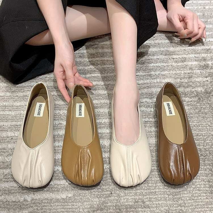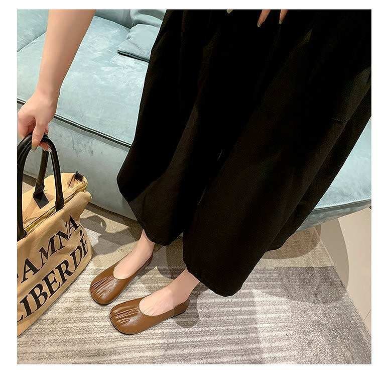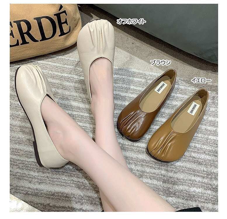・幅広設計で窮屈感なくゆったり履けるギャザーフラットパンプス。