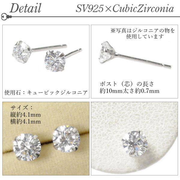 キュービックジルコニア ピアス sv925 4月誕生石 シルバー925 レディース 50代 40代 60代 30代 20代 スタッド cz 一粒 4本爪 シンプル
