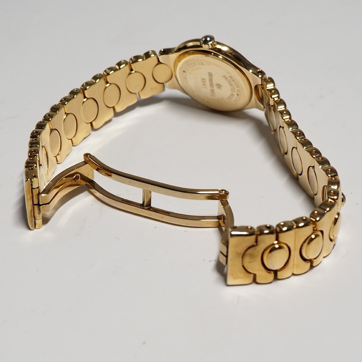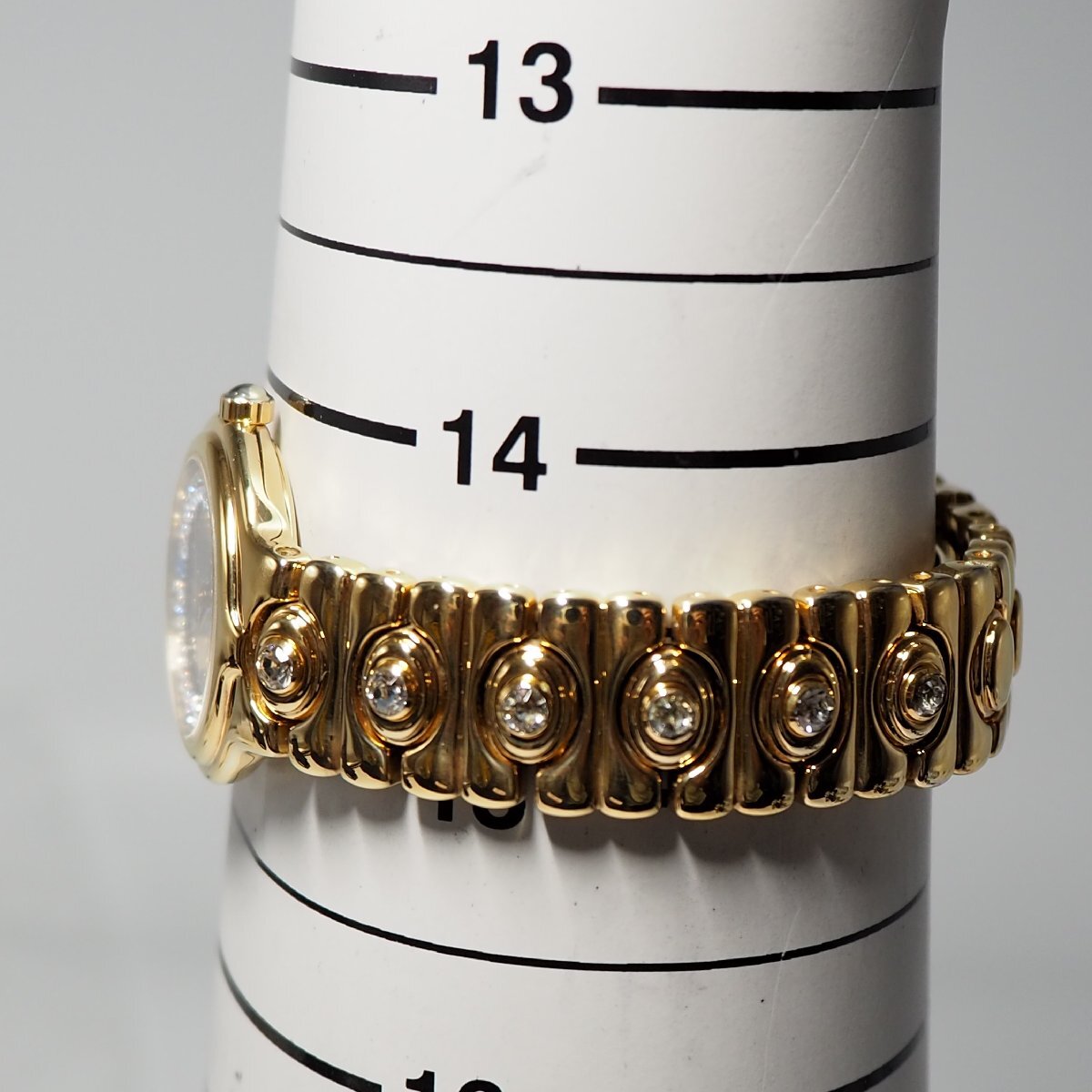 レイモンドウィルのダイヤ文字盤レディース腕時計です。 文字盤のダイヤのキラキラがとても綺麗で高級感のある腕時計です。 稼働品で除菌クリーニング致しておりますのですぐにご使用いただける状態です。 ☆管理番号:H258 ☆稼働品 ☆クリーニング (超音波洗浄+磨き作業+エタノール除菌クリーニング) ☆防水:日常防水 ☆ムーブメント:クォーツ ☆素材:ステンレス ☆電池交換:新品電池交換済(2025/09) 【サイズ】 ◇ケース約23mm×23mm ◇厚さ約5mm ◇腕回り約153mm 【カラー】 ◇文字盤:ブラック ◇ケース:ゴールド ◇ベゼル:ゴールド ◇ベルト:ゴールド 【状態】 ◇SA ☆全体評価:キズや汚れ等の不備はほぼ無く未使用に近い状態です。 ☆ケース:キズなし ☆ベゼル:キズなし ☆ガラス:キズなし ☆裏蓋:キズなし ☆ベルト:キズなし ☆その他特記事項:- 【付属品】 ◇本体のみ ※公安委員会の古物商許可証の元古物市場(コメ兵、ブランドオフ、エコリング等)にて購入したものです。 全て【正規品保証】致します。 過去1度も経験はございませんがコピー品であった場合返品返金対応をさせていただきますので安心してご購入下さい。 |