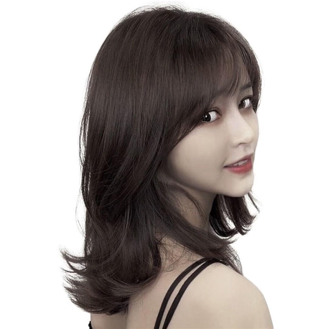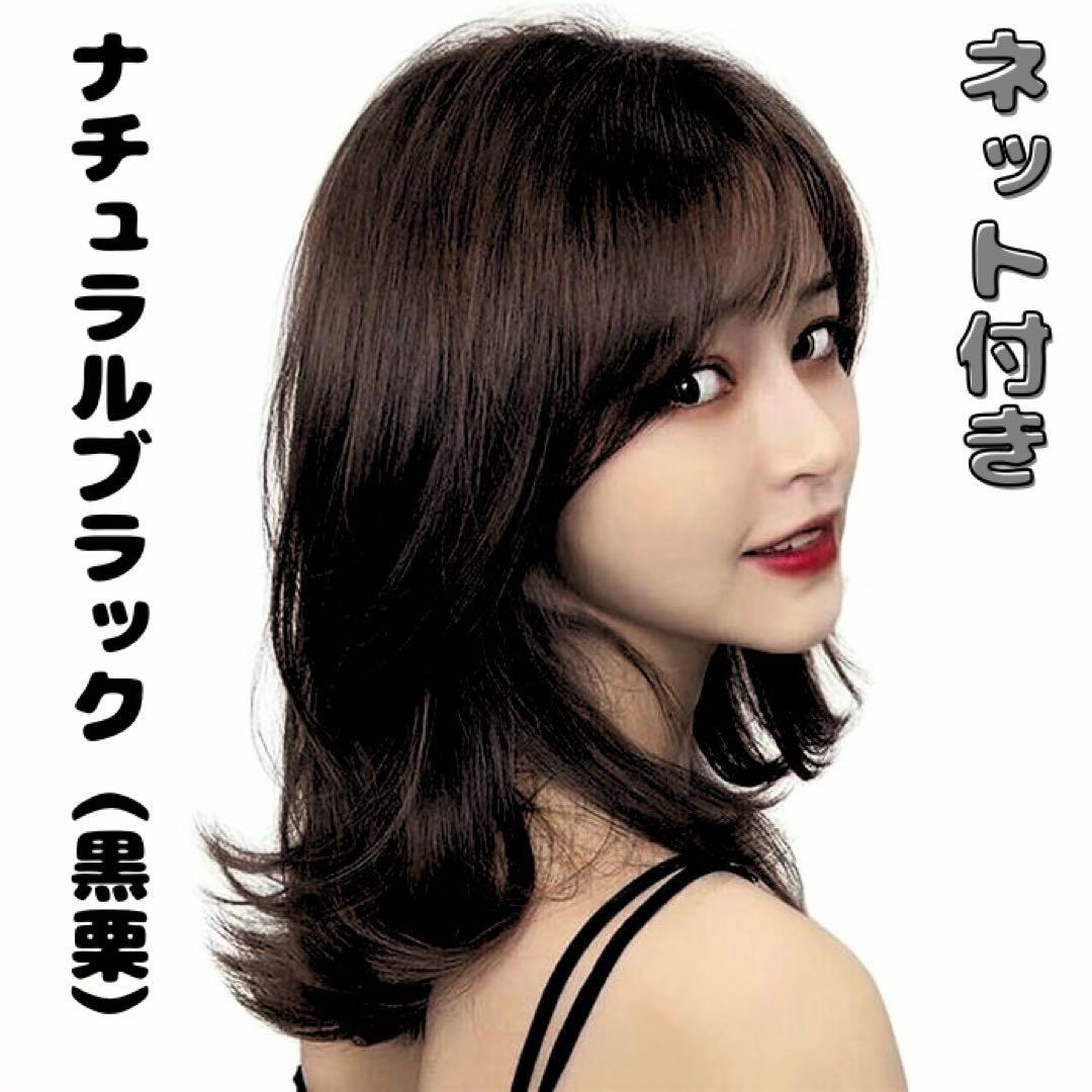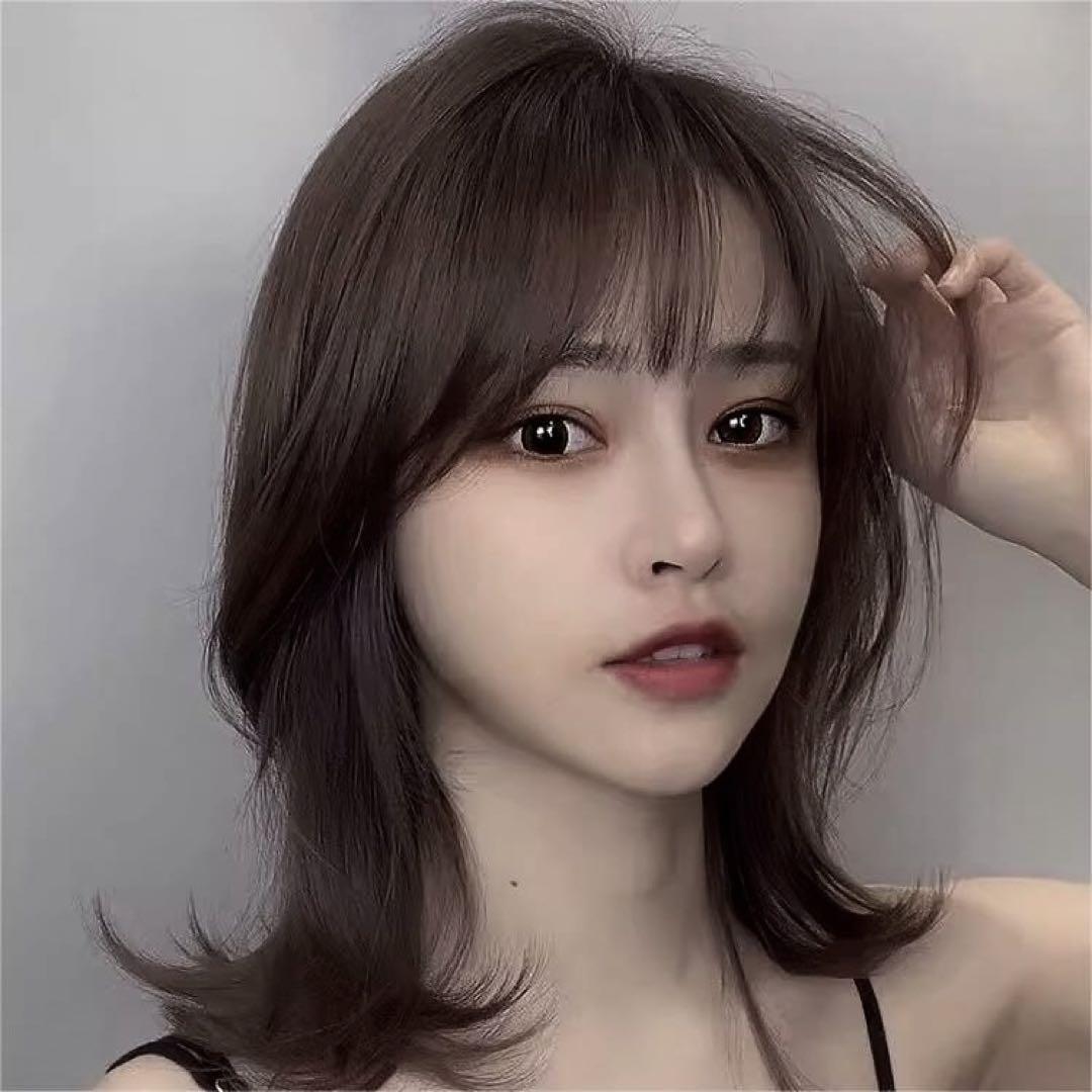 「ニュアンスウェーブ」ゆるくカールされたミディアム丈が大人可愛いフルウィッグ。