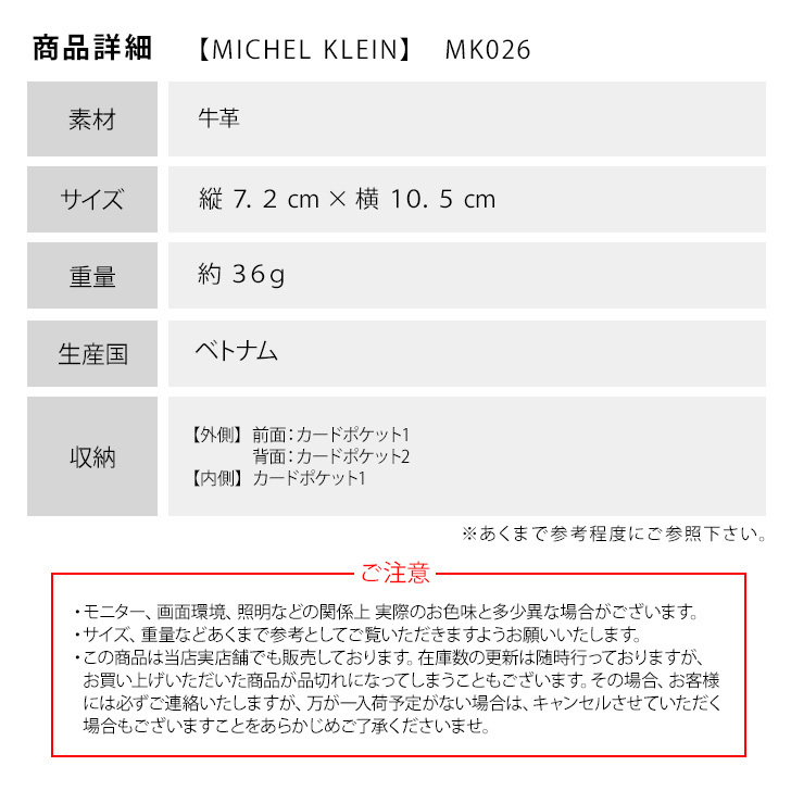 | 商品名 | MK026【01.ブラック】イルソーレ パスケース [ミッシェルクラン] [MICHEL KLEIN] |