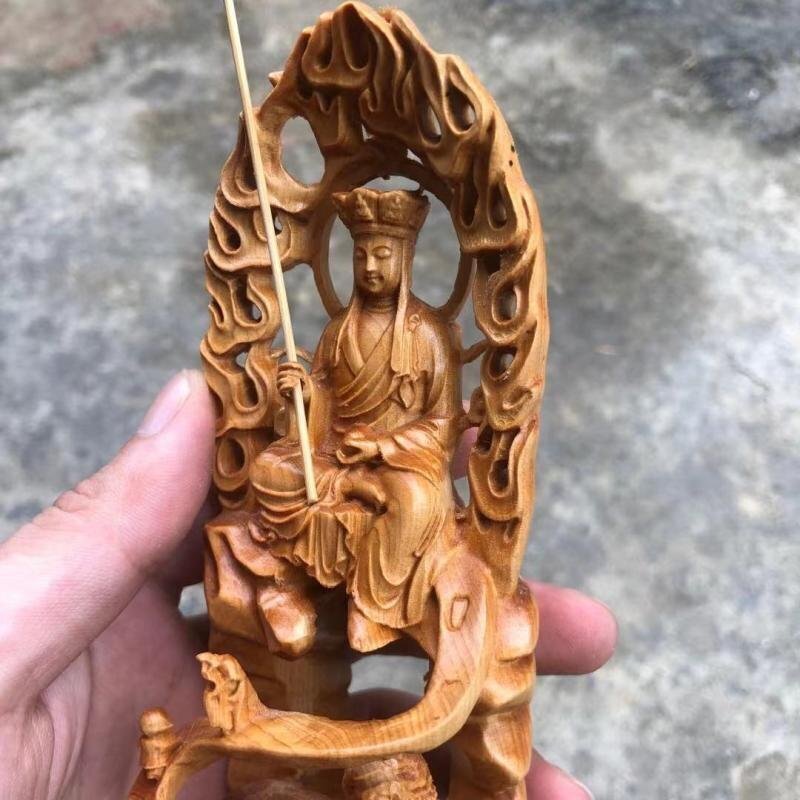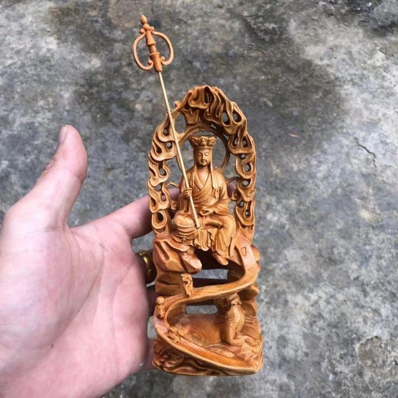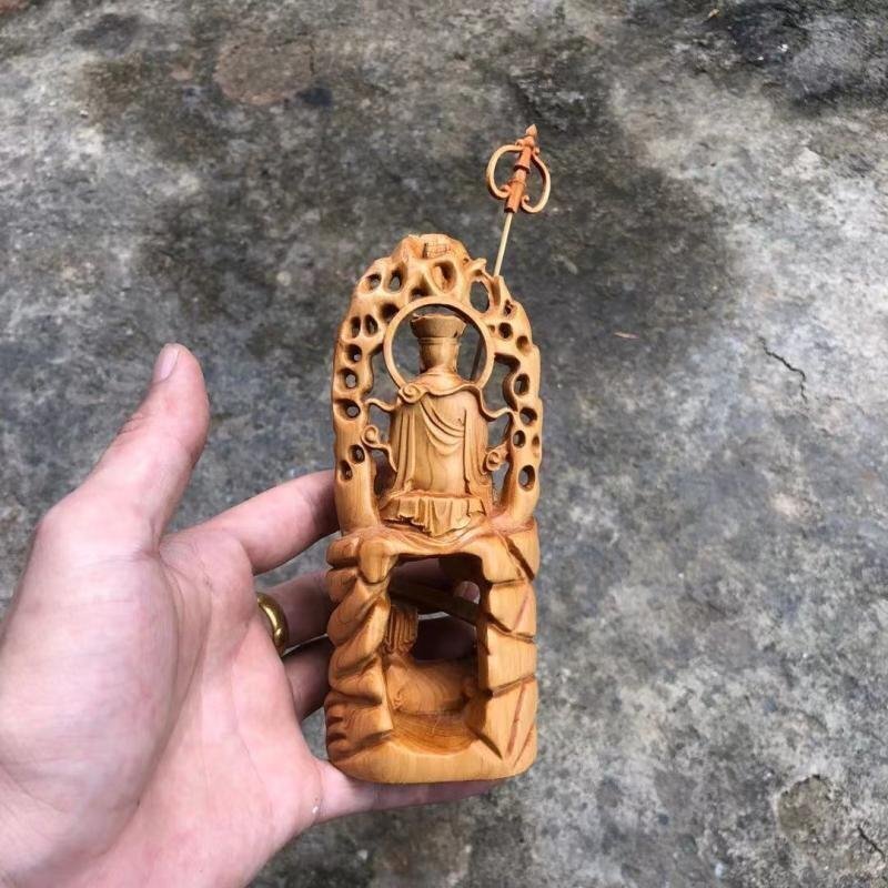 極上の木彫 仏教美術 精密彫刻 仏像 地蔵菩薩像 手職人手作り 未使用