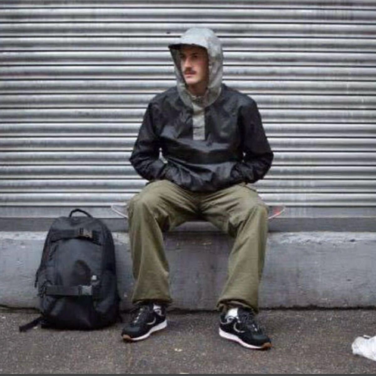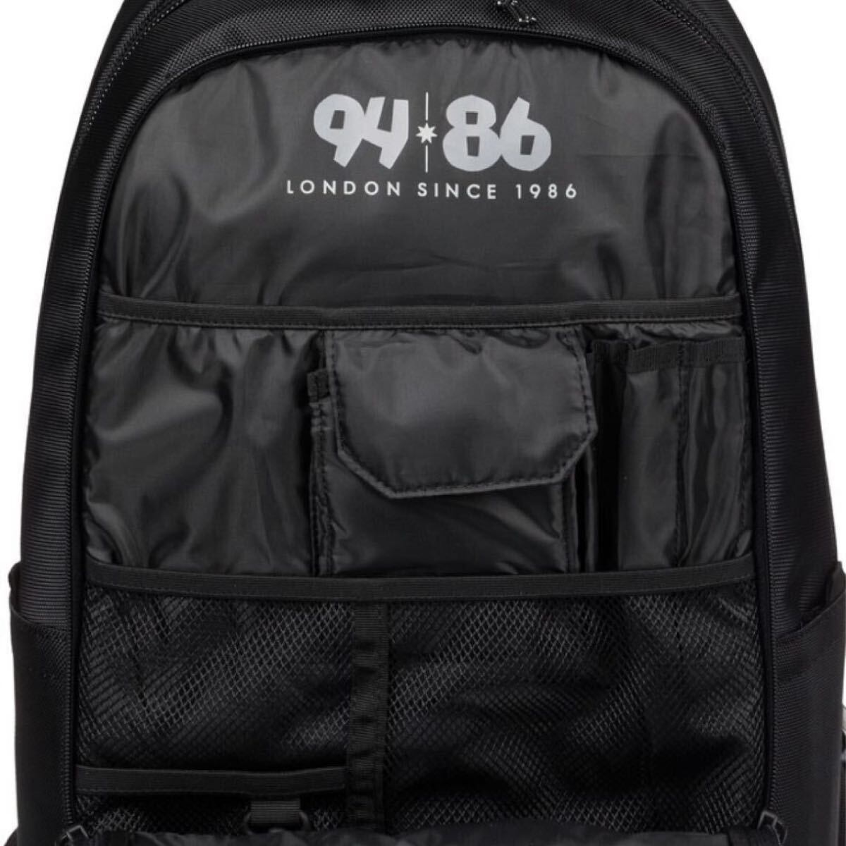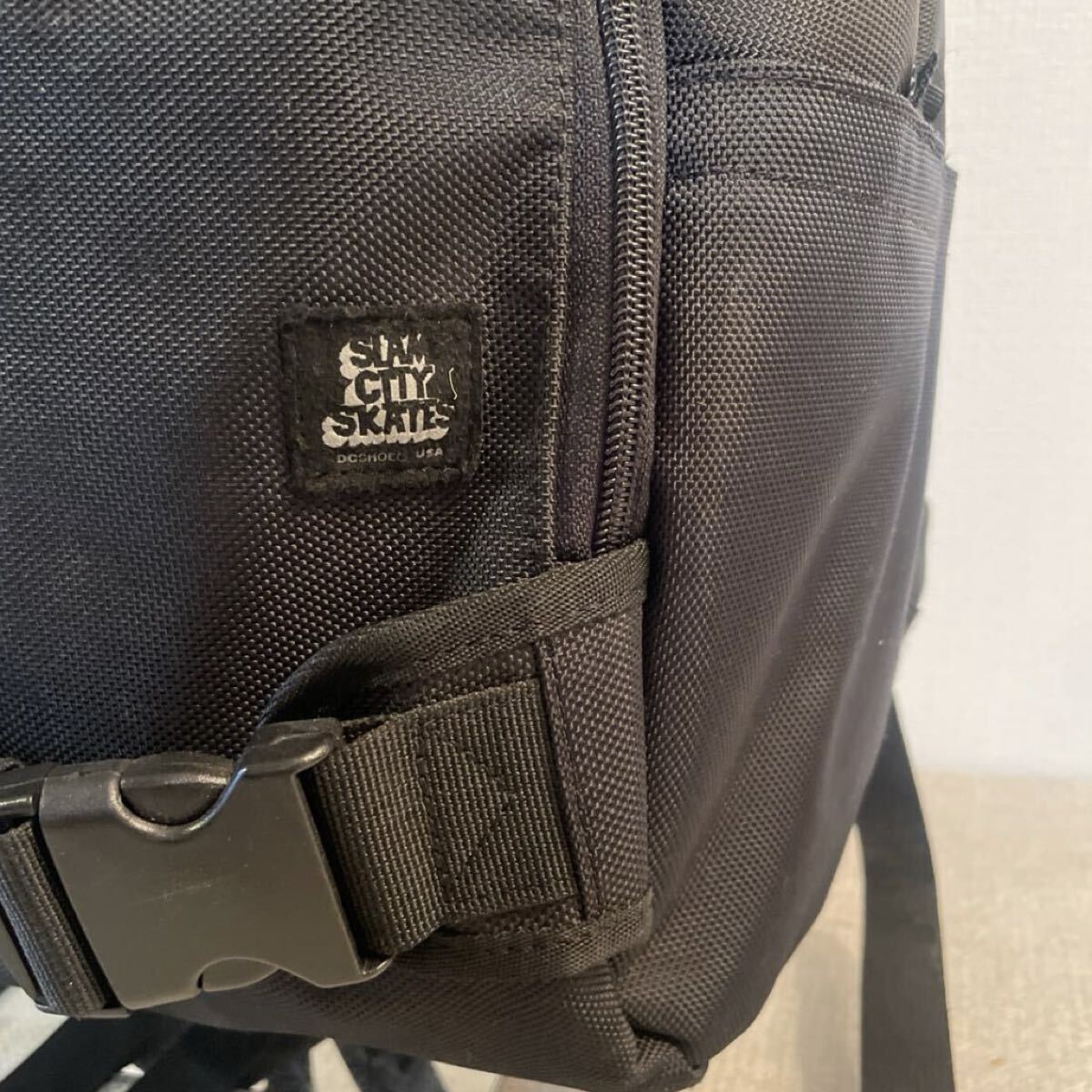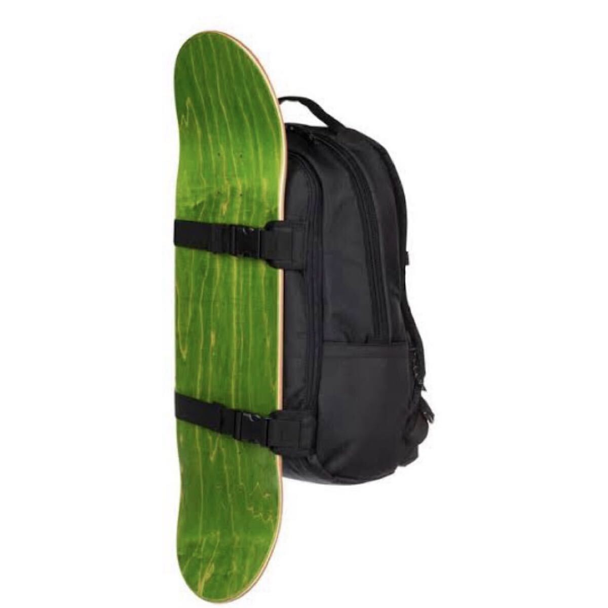 スケートを収納可能なストラップが付いたバックパック。オールブラックのボディにSlam Cityのタグがさり気なく主張する。Slam City Carryall