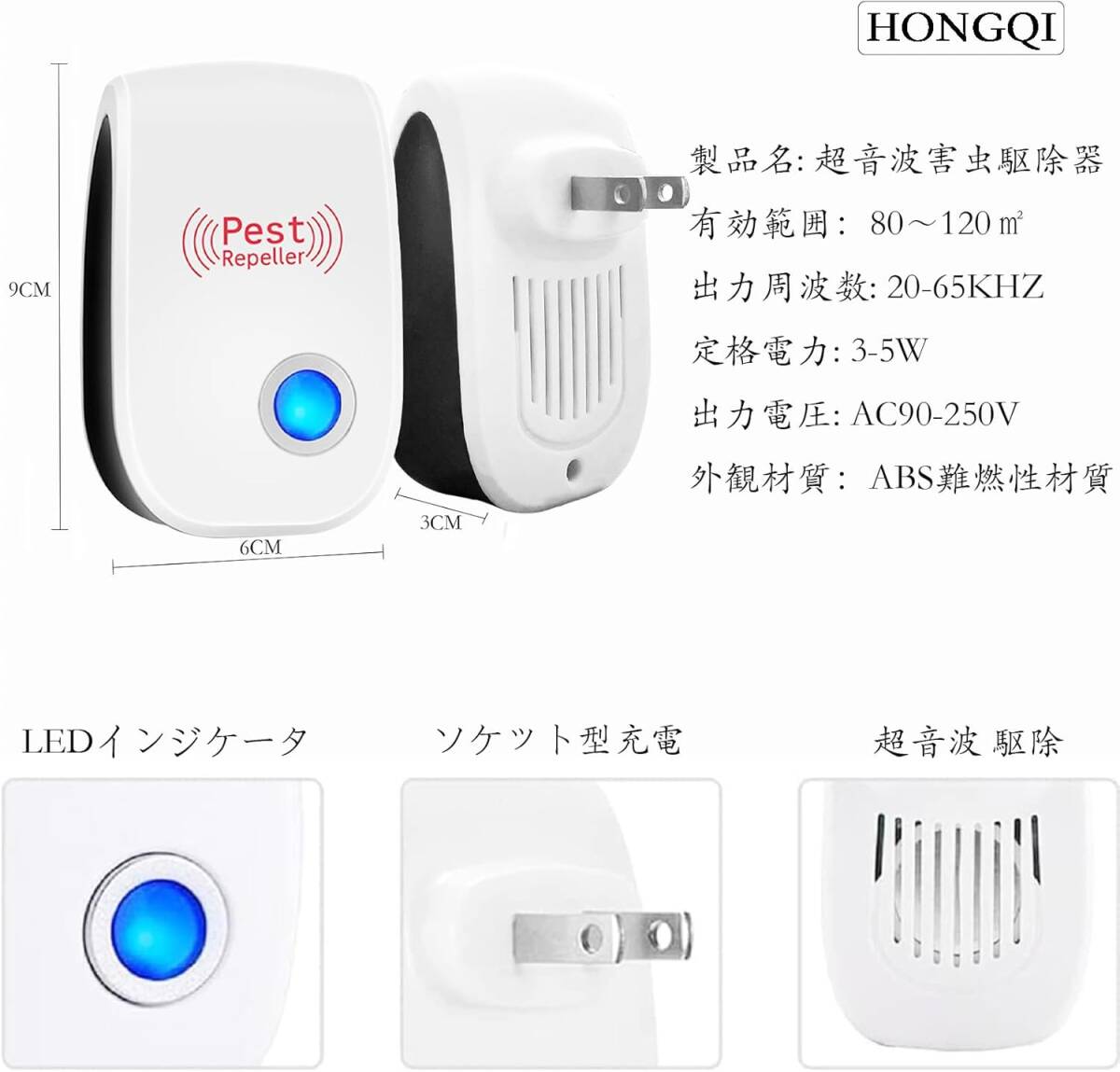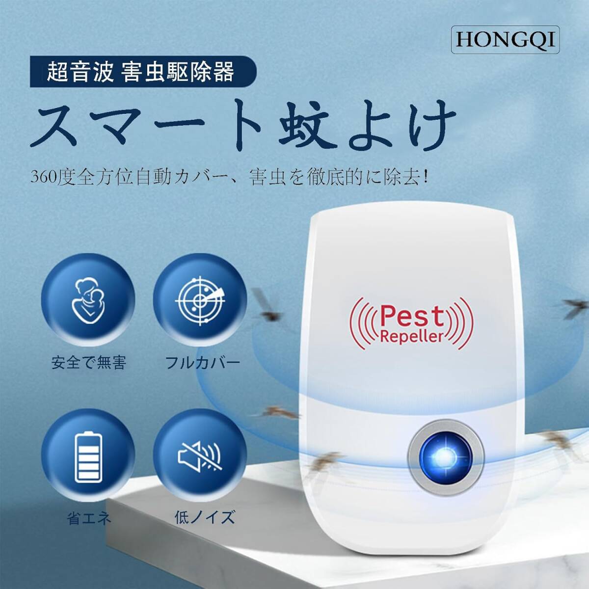 HONGQI 害虫駆除器 ネズミ駆除 超音波 虫除け【80-120㎡有効範囲/日本語マニュアル】ムカデ撃退 ゴキブリ対策 蚊よけ対策ムカデ/ゴキブリ/クモ/ねずみ/蚊/アリ/シロアリ/ハエ/ハチ/コウモリ/ダニ/ノミなどに対策 コンセント式 省エネ 静音無毒無臭 子供やペットにも安心【2個セット】
