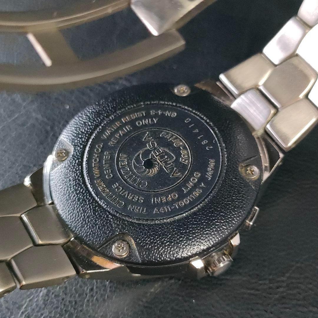 715‐13 美品 CITIZEN シチズン アテッサ A411 シルバー グレー ソーラー エコドライブ メンズ時計 A411‐T001165