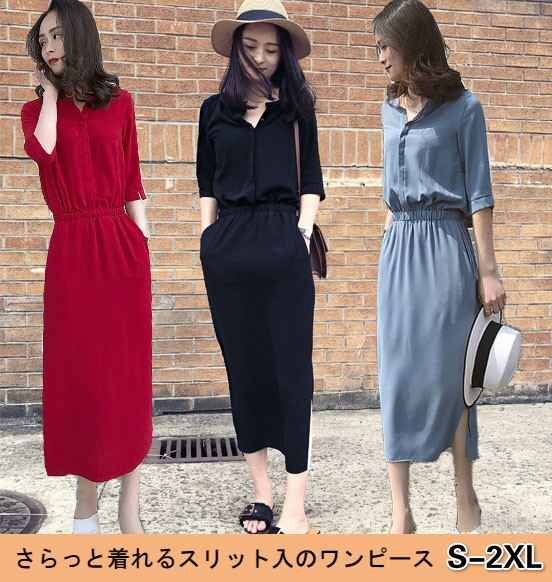 さらっと着れるスリット入のワンピース。風に揺れるスリットが女性らしさを引き立ててくれます♪