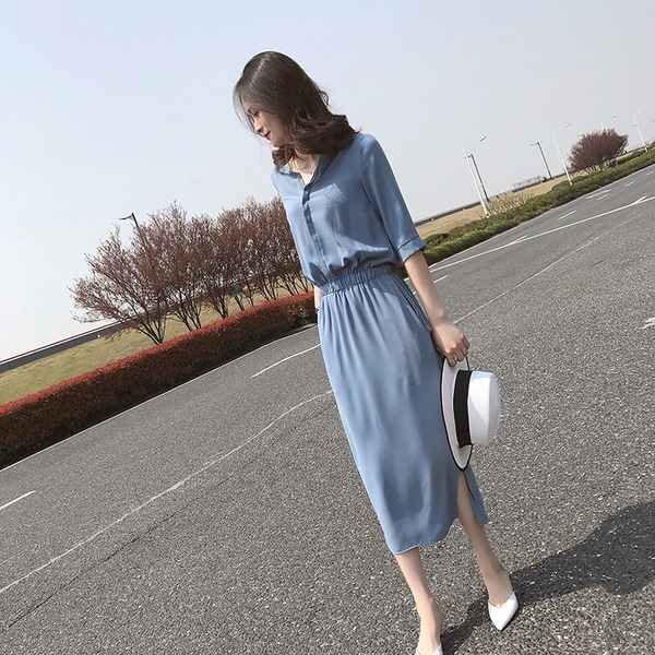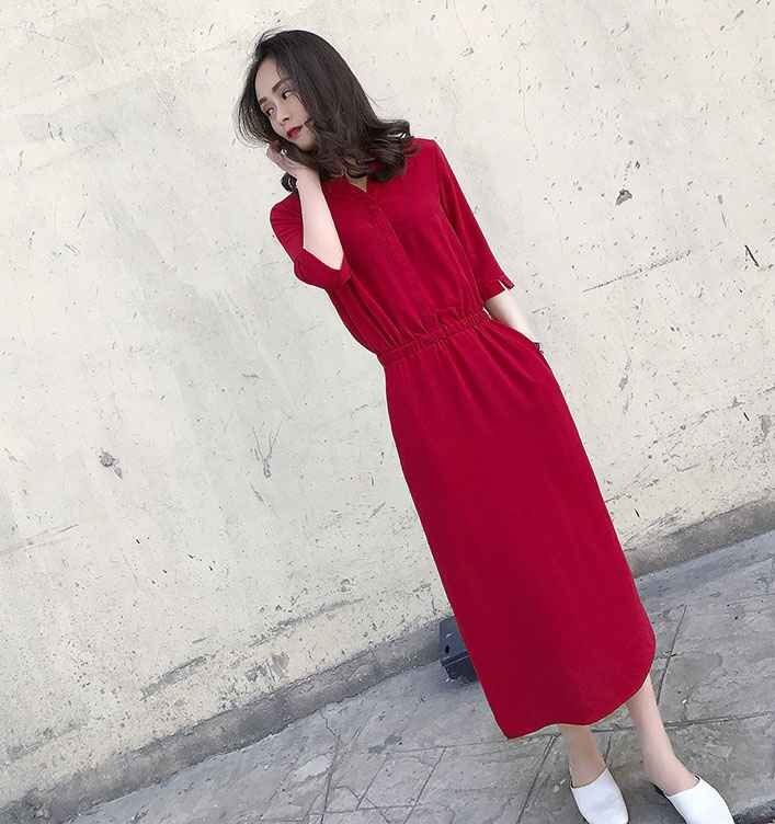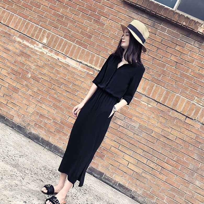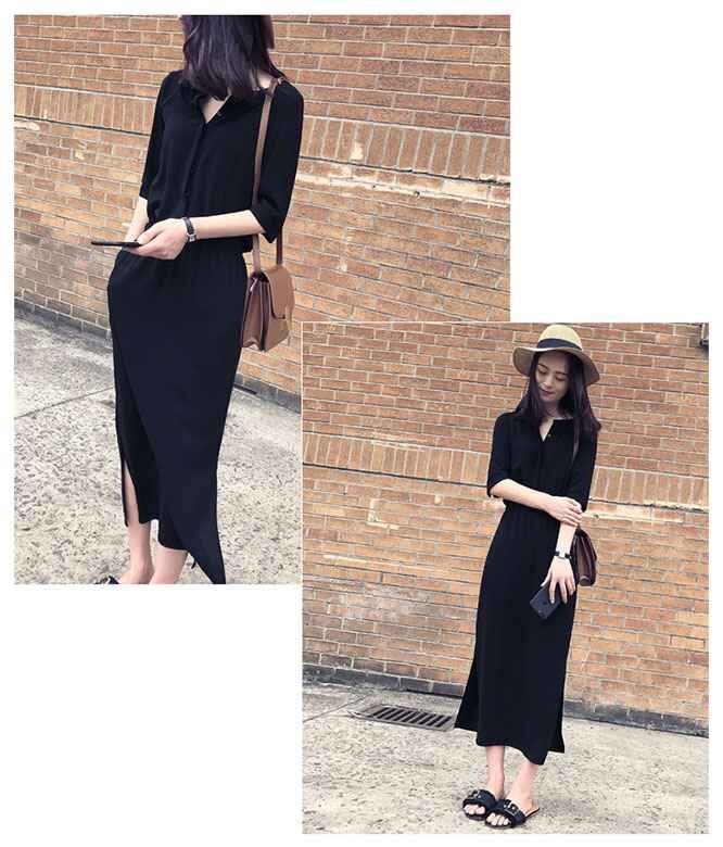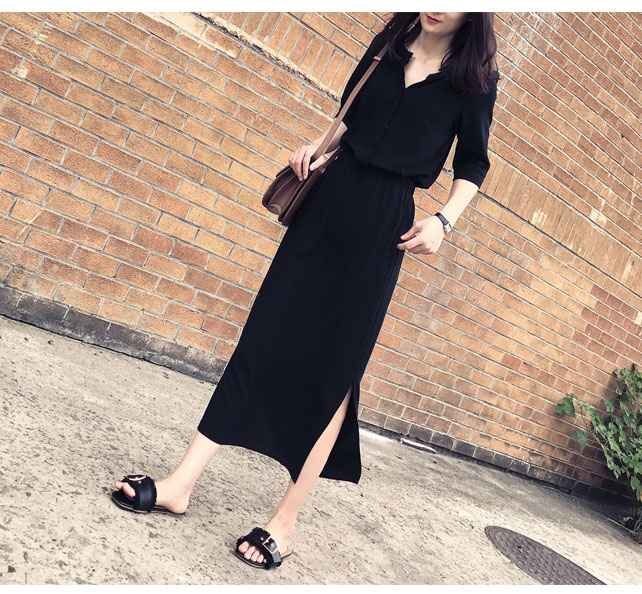 5分袖にもスリットが入っているふくらはぎ丈で、脇にはポケットが付いているのも嬉しいポイント。透け感がないので、ワンピースとして気軽に着て頂けます。